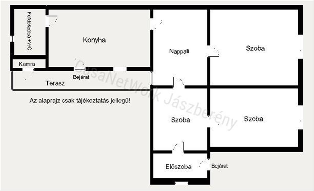 konyha, kamra és a fürdőszoba járólapos, minden további helyiség laminált padlós,