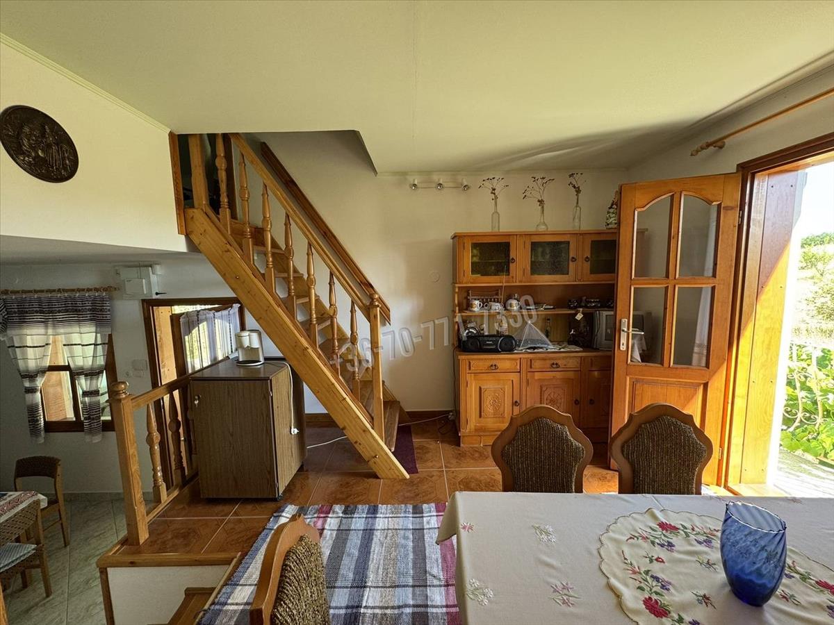Helyiségek és lakótér: a földszinten tágas konyha-étkező cserépkályhával, pici zuhanyzó, egy nappali az eltolt szinten, panorámás terasz kovácsoltvas kerítéssel, valamint egy hálószoba az emeleten. Árnyékot adó fedett tornác teszi teljessé a kényelmet, ahonnan rálátni szinte az egész birtokra. 24 M²-es pince, kerti zuhany, kerti melléhelyiség, kerti sütögető és veteményes is rendelkezésre áll.