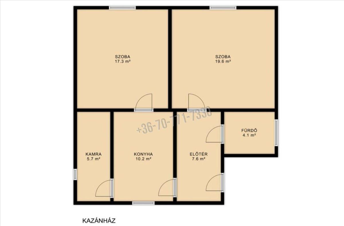 Az ingatlan elrendezése praktikus: különnyíló szobák, tágas előszoba, konyha, kamra és egy fürdőszoba áll rendelkezésre. a padozat járolapból, parkettából és linóleumból áll, a szobák világosak, északkeleti tájolásúak.