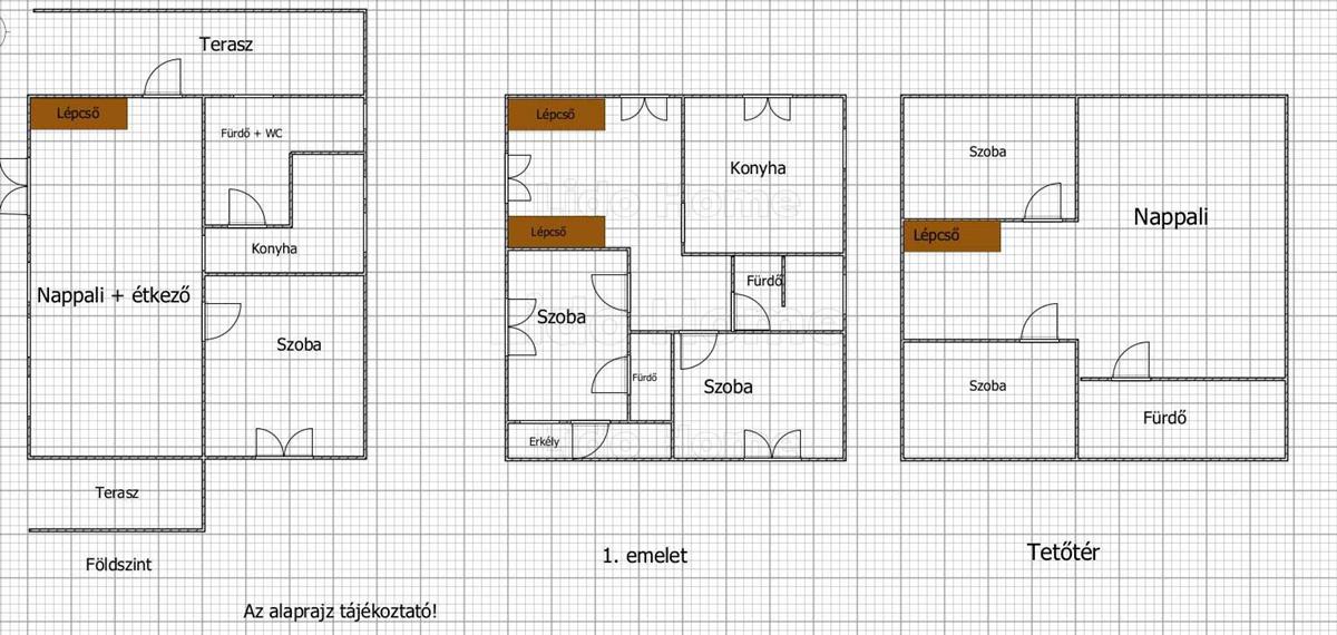 A földszinten egy szinten kapott helyet a nappali-étkező konyha, fürdő, és egy szép nagy hálószoba, 1 emeleten 2 hálószoba, 2 fürdőszoba és mosókonyha, konyha étkezővel. a tetőtéren 2 hálószoba illetve nappali, fürdővel – így kényelmes otthont biztosít akár nagyobb család számára is. Pinceszint:, gépészeti helyiség és egy tágas tároló található.