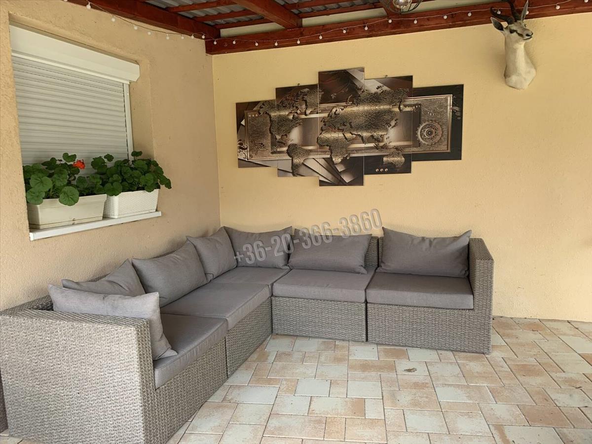 A gondosan parkosított kertben önálló garázs, gépkocsibeálló, fedett és nyitott terasz, ciszterna, valamint egy pince teszi még komfortosabbá a tulajdonos életét.