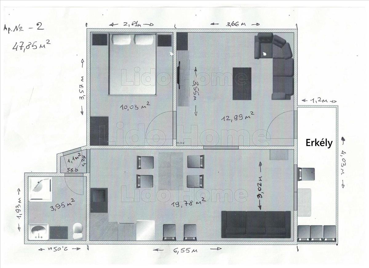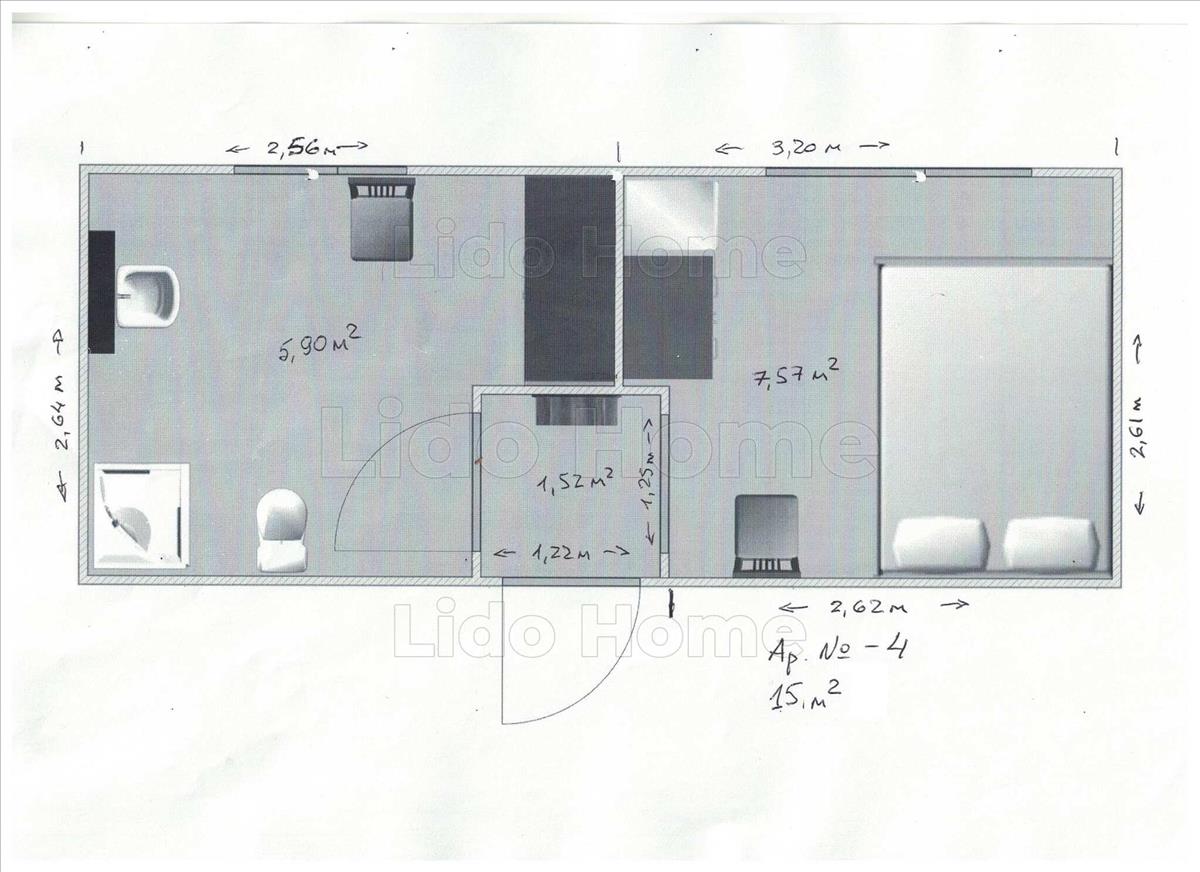- apartman 3 (2 fő részére): 1 hálószoba, nappali-konyha-étkező, fürdőszoba zuhanyzóval+WC
