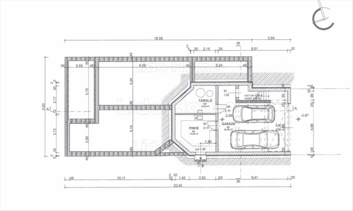 A földszinten egy szinten kapott helyet az amerikai konyhás nappali-étkező, speiz, előszoba beépített bútorral, vendég wc, 4 hálószoba, gardróbszoba, 2 fürdőszoba és mosókonyha – így kényelmes otthont biztosít akár nagyobb család számára is. Pinceszint: Dupla garázs Hörmann kapuval, gépészeti helyiség és egy tágas tároló található.