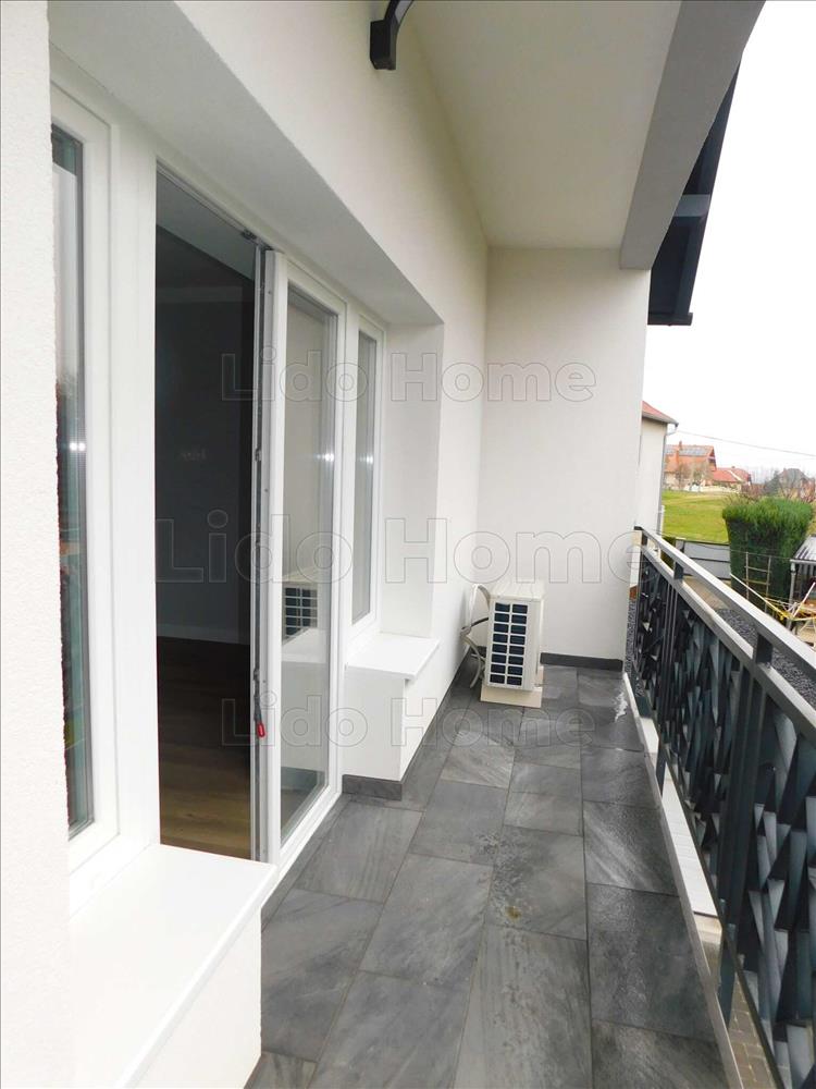 A 110 m2-es kettő szintes ház amerikai konyhás nappalival, három szobával, kettő fürdőszobával, erkéllyel épült.
