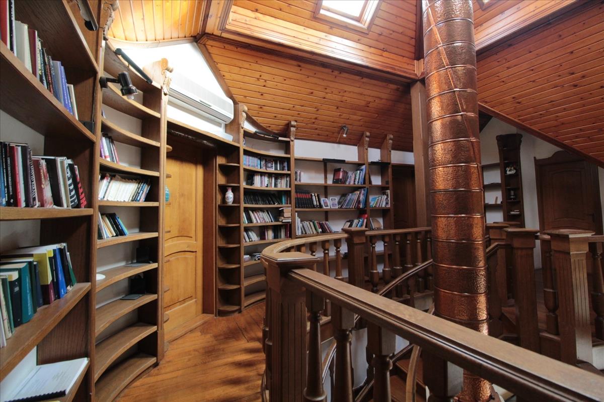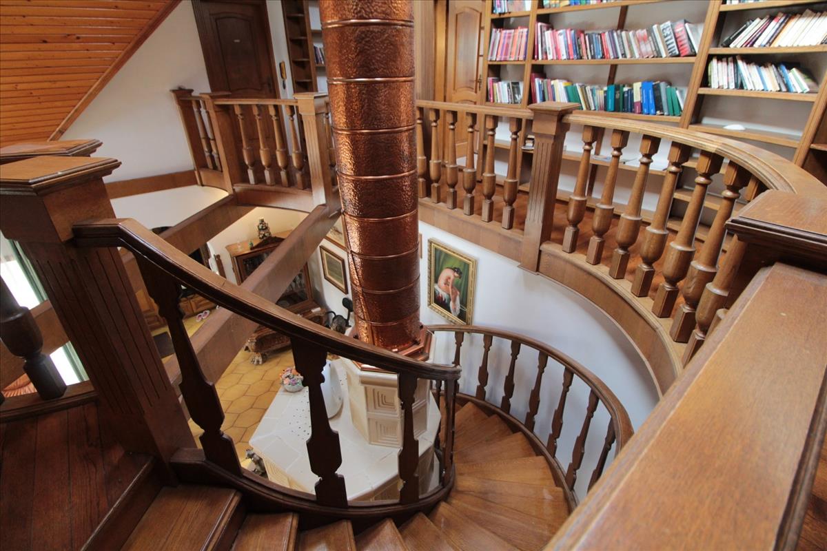 Masszív tölgyfa lépcső vezet az emeleti galériába, ahol egyedi könyvespolcok mellett haladva három szoba, mosókonyha és egy további fürdőszoba (kád, tusoló, wc) található.