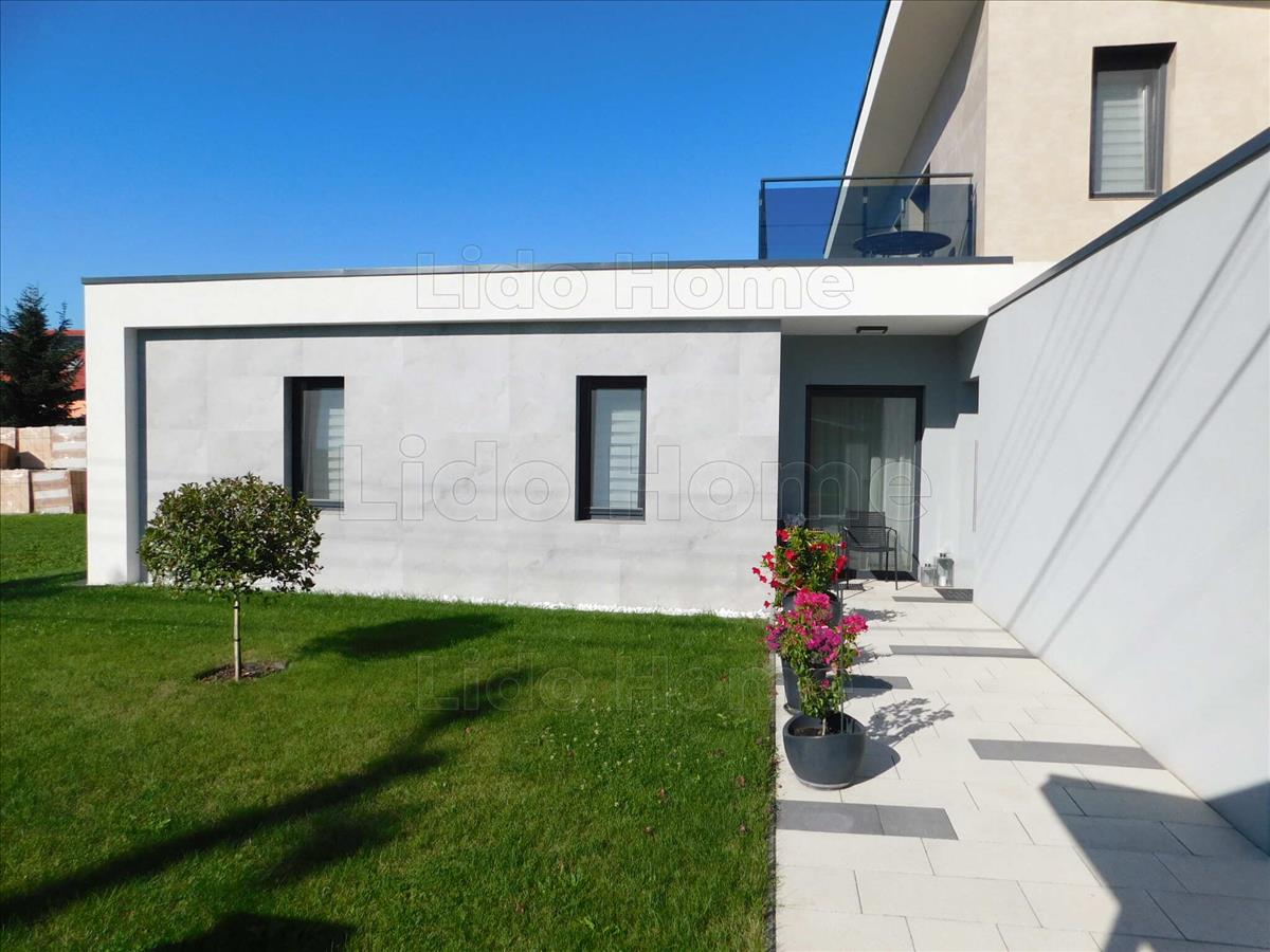Nagy méretű terasz jakuzzival, infraszauna, kettő emeleti erkély a család kényelmét szolgálja.