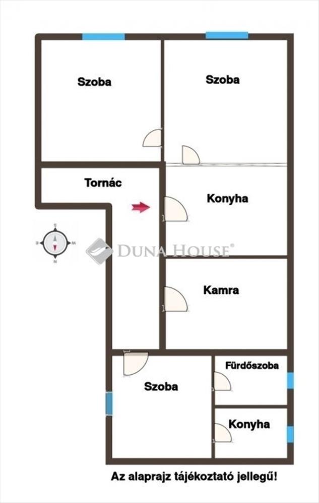 Az ingatlan mérete 64 m²-es, hozzátartozik még egy 12 m²-es kamra ill. Egy 12 m²-es fedett tornác is.