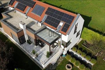 A melegről egy gáz-cirkó kazán gondoskodik padlófűtéssel. a villanyszámlát egy-az egyben fedezi a 9 kW teljesítményű napelem rendszer és még 7 évig szaldós elszámolás lesz. a 44 cm-es porotherm tégla 10 cm-es hungarocell szigetelést kapott.
