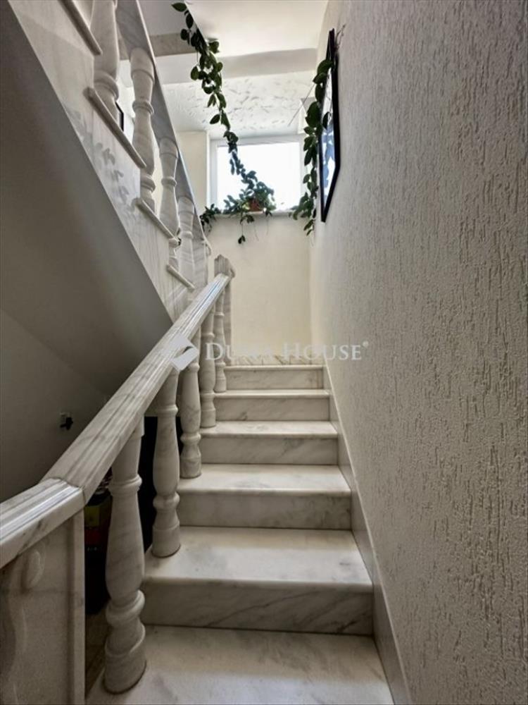 Az emeleti lakótér tágas és világos: nappali, konyha és étkező egy légtérben helyezkedik el, kiegészítve egy hálószobával és fürdőszobával. a padlástérben további három hálószoba, valamint egy fürdőszoba-WC található, így a ház nagyobb családok számára is kényelmes életteret biztosít. a szinteket elegáns márványlépcső köti össze.