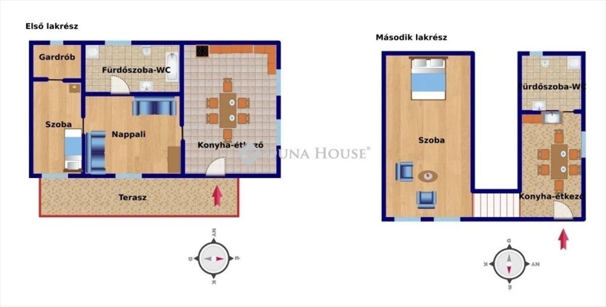 Az egyik, 41 m²-es egység 2021-ben teljeskörűen felújítva: modern konyha, fürdőszoba, valamint egy szuterén szoba található benne. Új nyílászárók, új elektromos hálózat, és egy 80 literes Ariston bojler biztosítja a kényelmet.