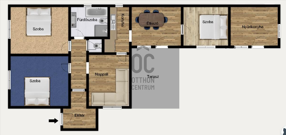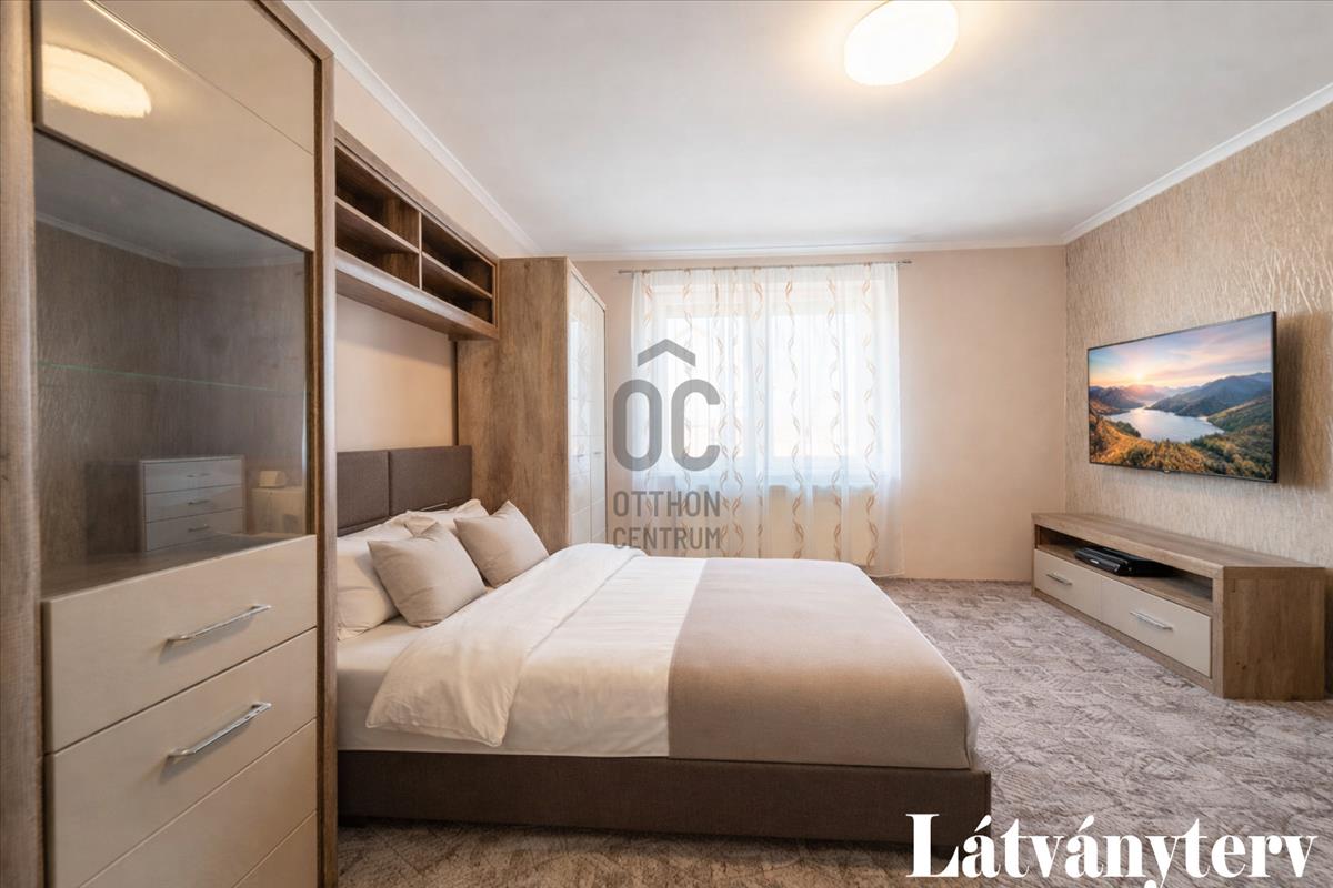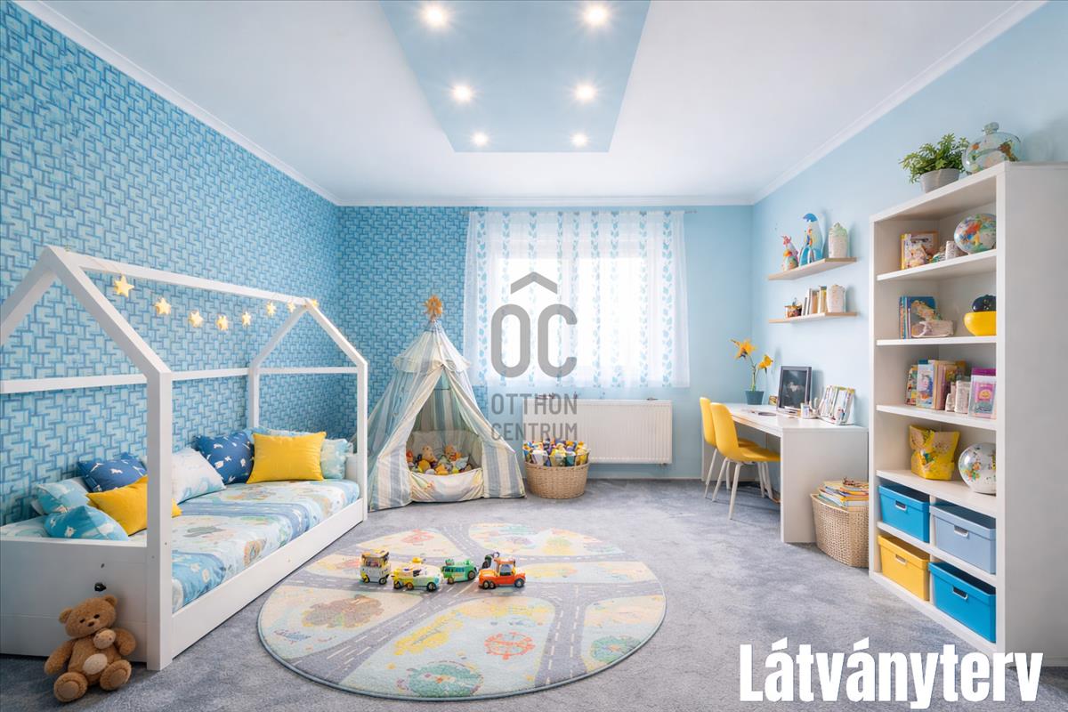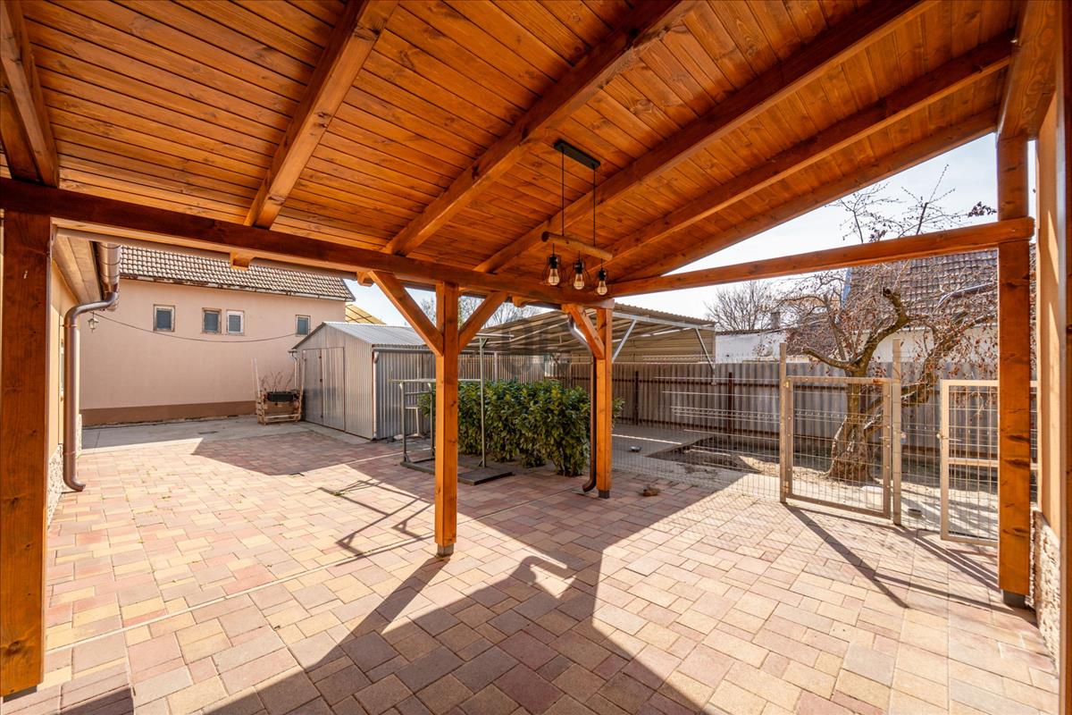 3 Hálószoba, amelyből egy a ház végében található, ami kiváló vendégszobának vagy szülői hálószobának is. Kis átalakítással a nyári konyhával egybe nyitva, külön lakrész is kialakítható.