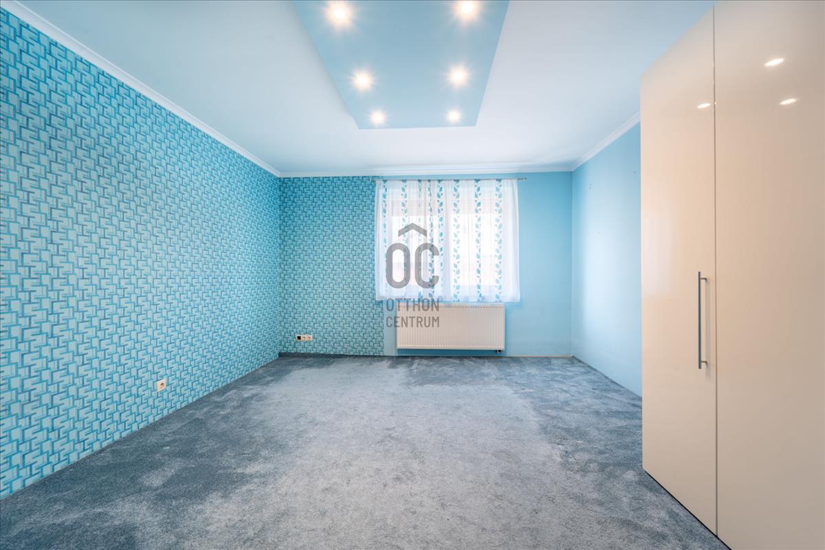 • Nappali+ 3 szoba, a három hálószoba közül az egyik a ház nyugodtabb, hátsó részében helyezkedik el, így tökéletes választás lehet szülői hálónak vagy vendégszobának. Ráadásul egy kisebb átalakítással – a nyári konyhával összenyitva – akár külön lakrész is kialakítható. Két szobában a padlószőnyeg alatt, szép állapotú parketta található.