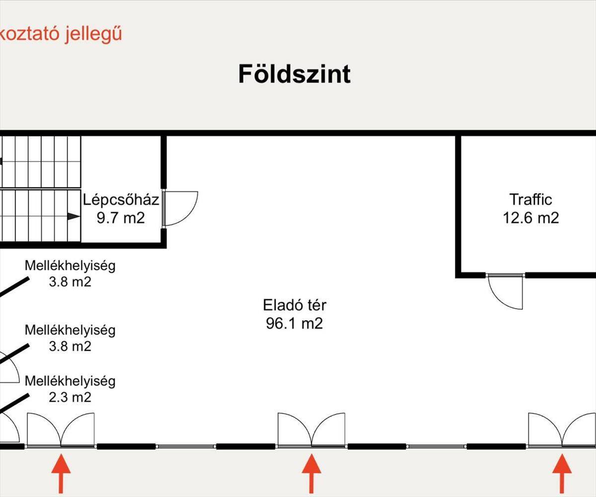 A méreteket és elosztását tekintve, a teljes belső hasznos alapterület a három szinten 344. 5 Négyzetméter. a földszinten 138. 9 Négyzetméteres területen, három bejárattal lett kialakítva egy tágas eladó tér, traffic, pénzváltó helyiség, raktár és három darab mellékhelyiség. a tetőtér a fölszintről belső lépcsőházból megközelíthető, hasznos alapterülete 71. 9 Négyzetméter, ahol található két nagyméretű szoba, fürdőszoba zuhanyzóval és mellékhelyiséggel és egy közlekedő. Konyha kialakítására egyszerűen lehetőség nyílik, így könnyen teljes értékű lakássá válhat. a tetőtér további hasznos padlástérrel is rendelkezik. a szuterén szint szintén a belső lépcsőházból, valamint a hátsó udvarból külön bejárattal is megközelíthető. a 133. 7 Négyzetméteren egy légterű raktár és kazánház lett kialakítva, az alapterületnek köszönhetően többféle hasznosítási lehetőség áll rendelkezésre ezen a szinten is.