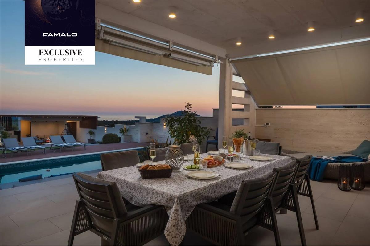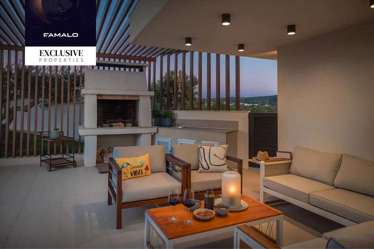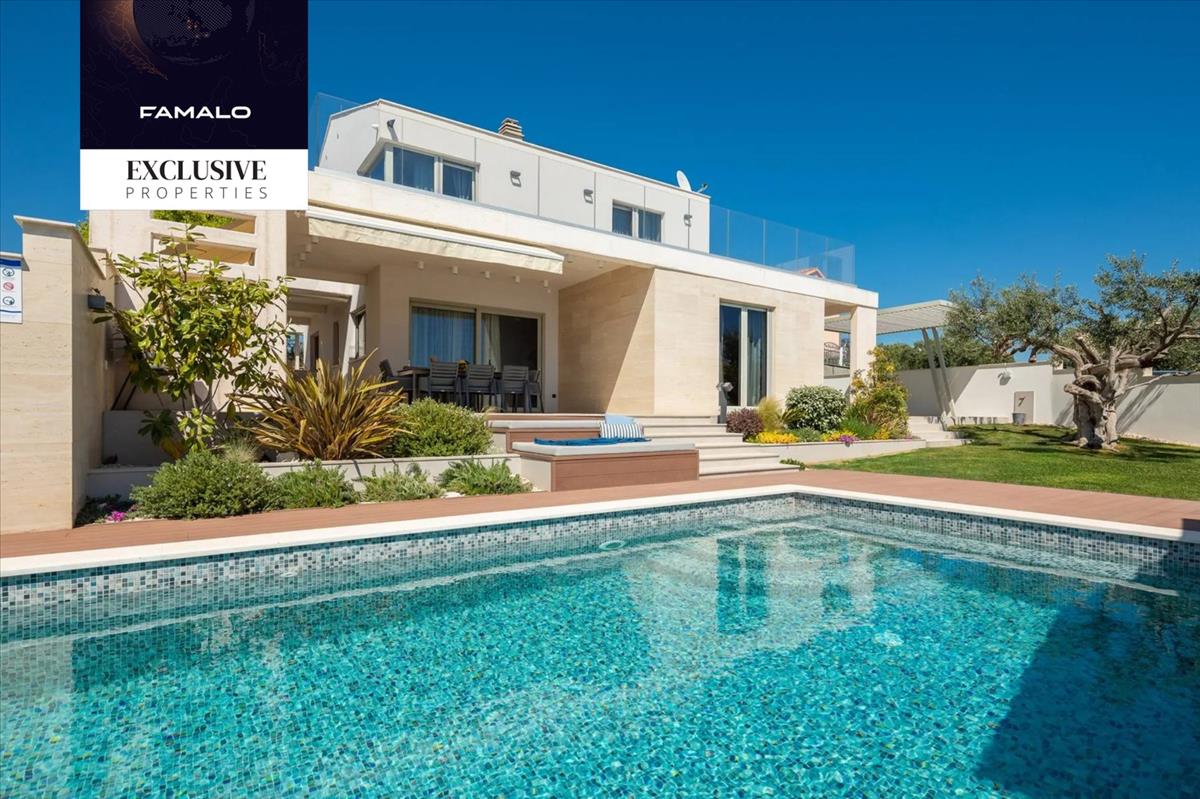 A villa külső területe gondozott kerttel rendelkezik, amelyben fa tüzelésű grill, kültéri konyha, kő zuhany, wc, tárolóhelyiség és pihenőhely található, amely részben fedett, részben pedig alumínium pergolával árnyékolt. a fűtött medence rendkívüli értéket képvisel, mivel egész évben használható.