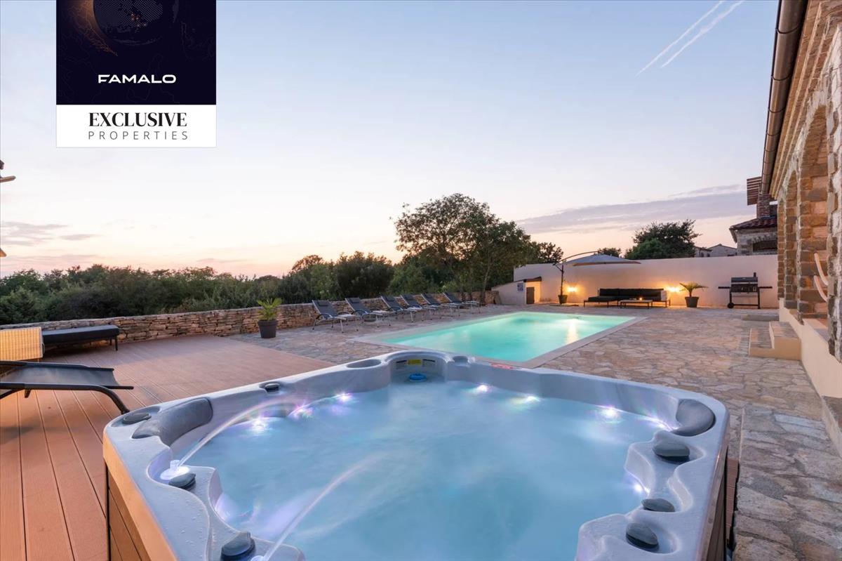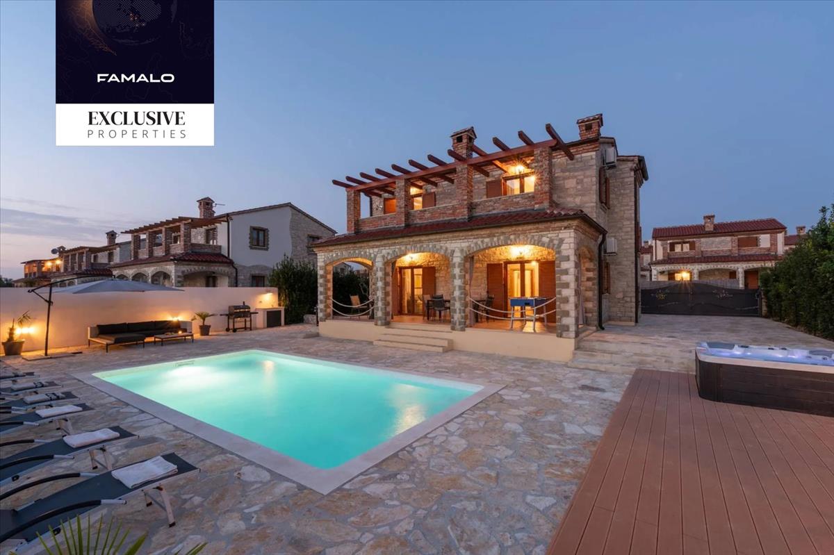 Eladó egy modern kőház medencével és pezsgőfürdővel, amely egy csendes környéken található, Svetvinčenat közelében, Horvátországban. Ez a kétszintes, 155 m² alapterületű ház egy 538 m²-es, gondozott telken található, zöldövezetben, a főutaktól távol, ami garantálja a magánszférát és a nyugalmat.Tágas elrendezés és kiváló felszereltség