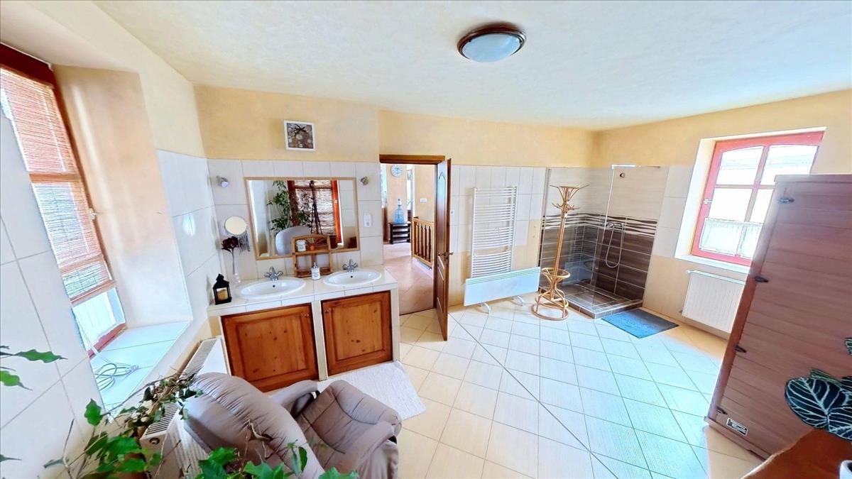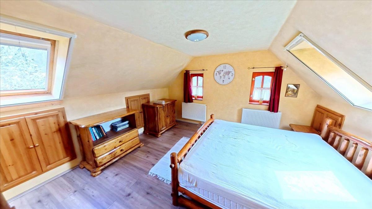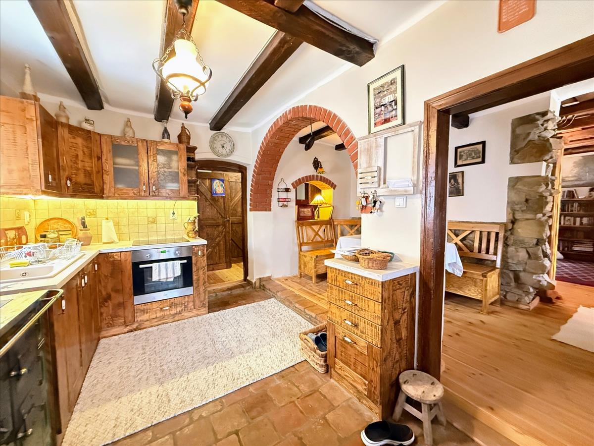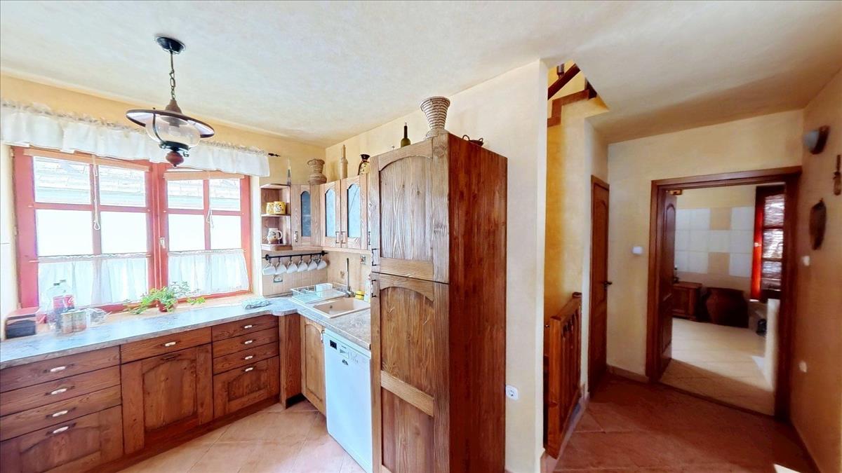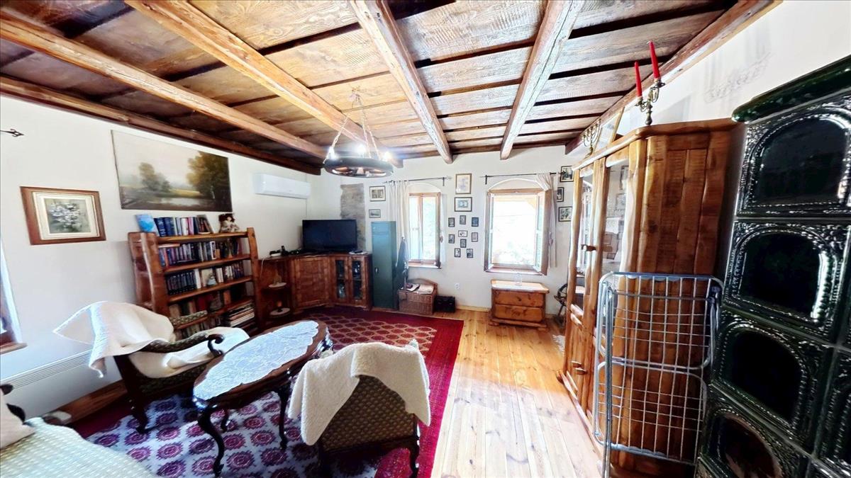 A második - kisebb ház - egy régi, sziklatalapzaton álló, vegyesfalazatú ház, mely 8 éve teljeskörűen, gyakorlatilag a falazatig lett felújítva. Ekkor új tetőt, villamos- és vízhálózatot, új, fa nyílászárókat kapott a ház, így a mai igényeknek tökéletesen megfelel. Fűtéséről két gyönyörű cserépkályha és / vagy klíma gondoskodik.