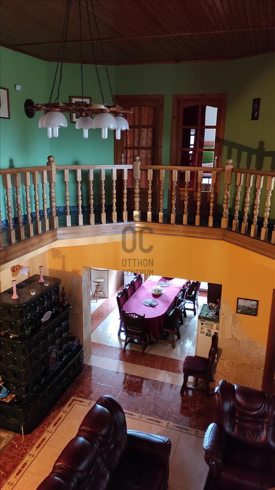 9. 612 m2 területen található a 278 m2 nettó alapterületű kétszintes családi ház, amely 2003-ban egyedi kiviteli terv alapján épült, homlokzati megjelenése az egykori kúriákat idézi. Az épület 30cm-es falvastagságú, B30-as porotherm téglából épült, a nyílászárói fából, hőszigetelt üvegezéssel készültek. a földszinten található 3 darab szoba, nappali és étkező, konyha és kamra, továbbá a fürdőszobához és wc-hez tartozó közlekedő, amelyből a kazánház is elérhető. a lakóház déli oldalán zárt terasz (télikert) található, amelyből 3 irányban nyílik rálátás a ház körüli parkosított kertre. Az ingatlan északi oldalán található a fatároló, amely a fedett hátsó teraszról érhető el. a nappali felett nyitott a légtér, gyönyörű tölgyfa-lépcső vezet az emeletre. Az emeleten a galériás körfolyosóról nyílik 4 hálószoba és az emeleti fürdőszoba+tároló. Az emeleten található egy kisebb alapterületű nappali, ahonnan ki lehet jutni a loggiá-ra. Az ingatlan fűtését nagy teljesítményű gázkazán és vegyes tüzelésű kazán biztosítja. a földszinti nappaliban található egy erdélyi mester által rakott impozáns cserépkályha, amely a meleg mellett a megfelelő hangulatról is gondoskodik a hideg téli estéken. a meleg vizet villanybojler és a gázkazán biztosítja. a házba műholdas televízió és internet is bekötésre került.