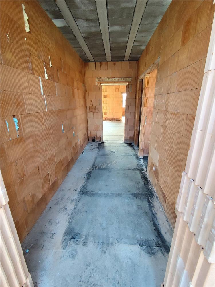 A főfalak 30 cm vastag téglából, a válaszfalak szintén minőségi falazóelemekből készülnek, minden felület gépi vakolást kap.