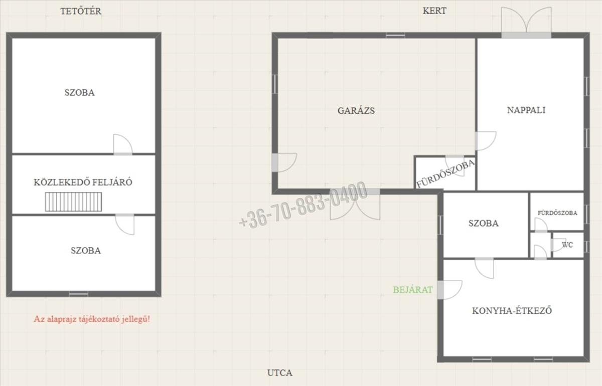 A garázs mellett külön bejárattal található egy 35 m2-es, épületrész, mely kiválóan alkalmas külön lakrész kialakítására, ami fürdőszobával ellátott.
