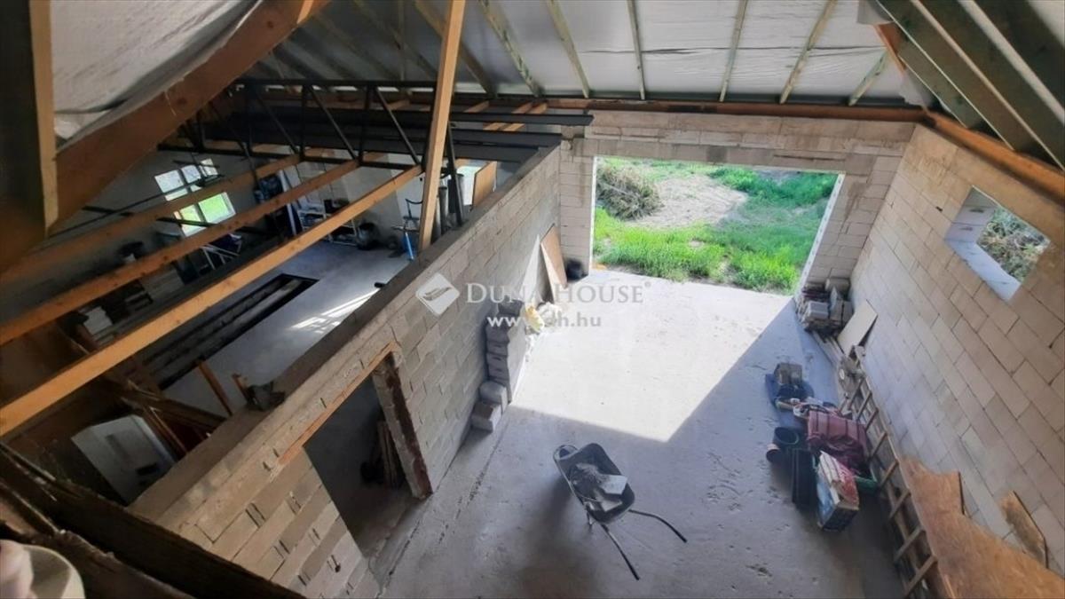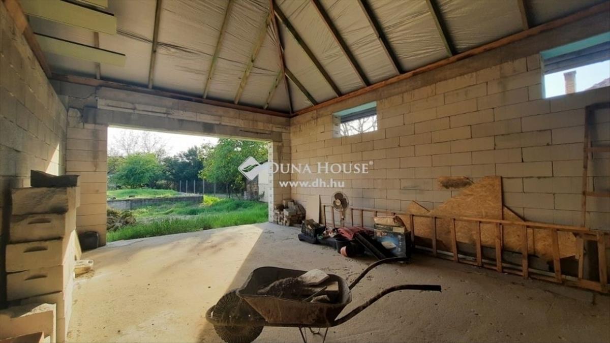 A hozzáépített, szerkezetkész rész áll egy 49 nm -es garázsból és egy 34 nm -es helyiségből, melyek nagy belmagassággal rendelkeznek, így tetőtér beépítésben is gondolkodhat az új tulajdonos.