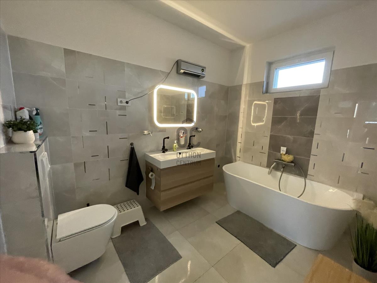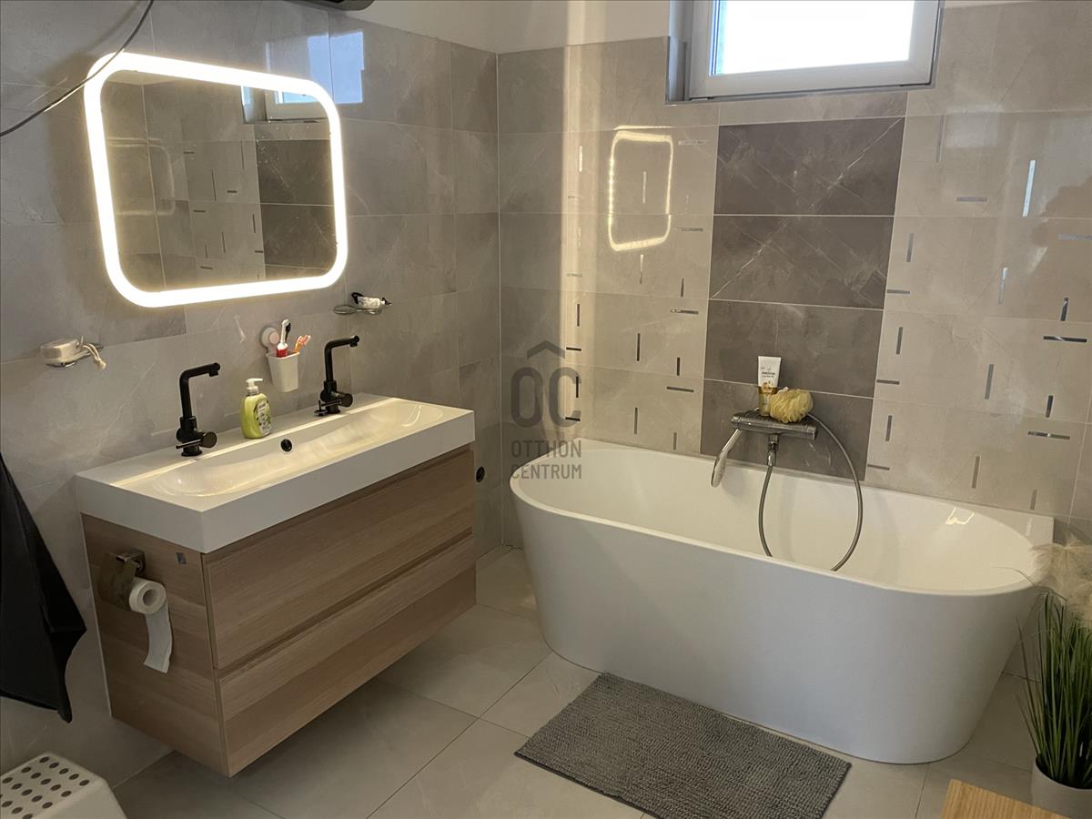 Extrák: dupla garázs, kúttal, elektromos nagykapu és elektromos garázsajtó(ditec), minőségi burkolatok, működő riasztó, örökzöldekkel beültetett, parkosított kert öntözőrendszerrel.