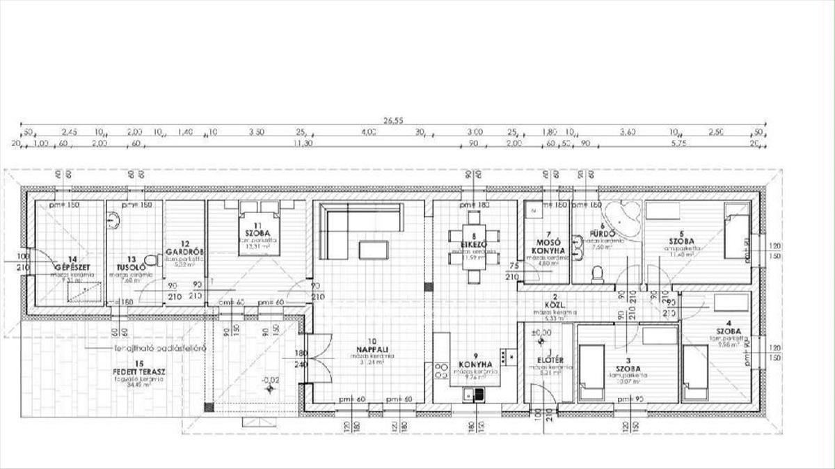 A ház belső elrendezése tágas és átgondolt, ideális többgyermekes családok számára, de akár két generáció is kényelmesen elfér benne. a hatalmas udvar lehetőséget ad játékra, kertészkedésre, kikapcsolódásra is.