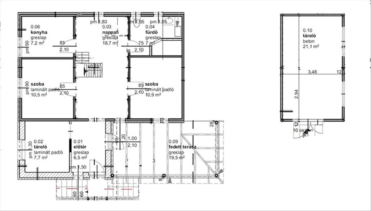 •68, 5 nm földszint (Nappali, 2 szoba, konyha, fürdő, tároló + 40 nm tetőtér (2 szoba)