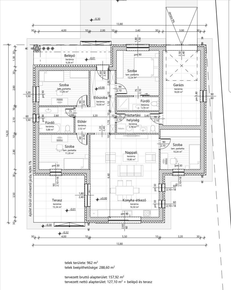 Az ingatlant napfényes és tágas terek jellemzik. Elosztása kiváló, akár több gyermekes családok részére is, kényelmes otthont biztosít. a 37 m2-es körbe napozott amerikai konyhás nappali, közvetlen teraszkapcsolatos. a szülői háló saját, kényelmes fürdővel rendelkezik. Műszaki felszereltsége a mai kor követelményeinek teljes mértékben megfelel. a 12cm-es grafitos homlokzati szigetelésnek, és a 3 rétegű hőszigetelt műanyag nyílászáróknak köszönhetően fenntartása rendkívül kedvező. a fűtéséről és melegvíz ellátásáról, rendkívül hatékony, környezetbarát, energiatakarékos 12kw-os hőszivattyú gondoskodik. a forró nyári napokon 2 db inverteres klímaberendezés biztosítja az ideális hőmérsékletet. a kényelmes méretű garázs elektromos garázskapuval ellátott. Az ingatlan riasztó rendszerrel felszerelt.