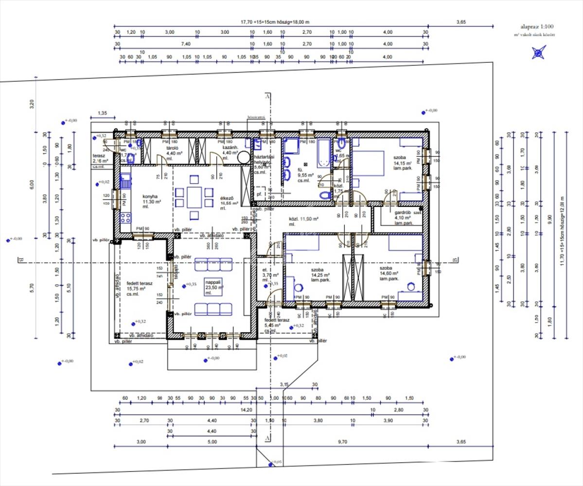Az ingatlan 719m2-es összközműves intím telken épült magas minőségben magán célból! a ház hasznos alapterülete 143m2 + 3db terasszal ami összesen 23, 50m2. a 30-as Ytongból+15cm-es grafitos homlokzati szigeteléssel épült otthon központja az egyedi tágas több mint 51m2-es egyedi hangulatú amerikai konyhás nappali. További helyiségek: 3 szoba, fürdőszoba, külön wc, tároló, háztartási helyiség, kazánház, közlekedő és előszoba helyiségekből áll, valamint egy teraszról megközelíthető külső Wc-vel. Az épület fűtése-melegvízellátása 30kw-os Ariston kombicirkóval biztosított padlófűtésen keresztül, valamint az egész éves kellemes komfortról 5db hűtő-fűtő klíma is gondoskodik. a padló 15cm-födém 20cm szigeteléssel lett kivitelezve. Az antracit leier felületkezelt betoncserép nemcsak kimagasló védelmet nyújt, hanem modern megjelenésével, tartós színvédelmével évtizedekig esztétikus megjelenést kölcsönöz.