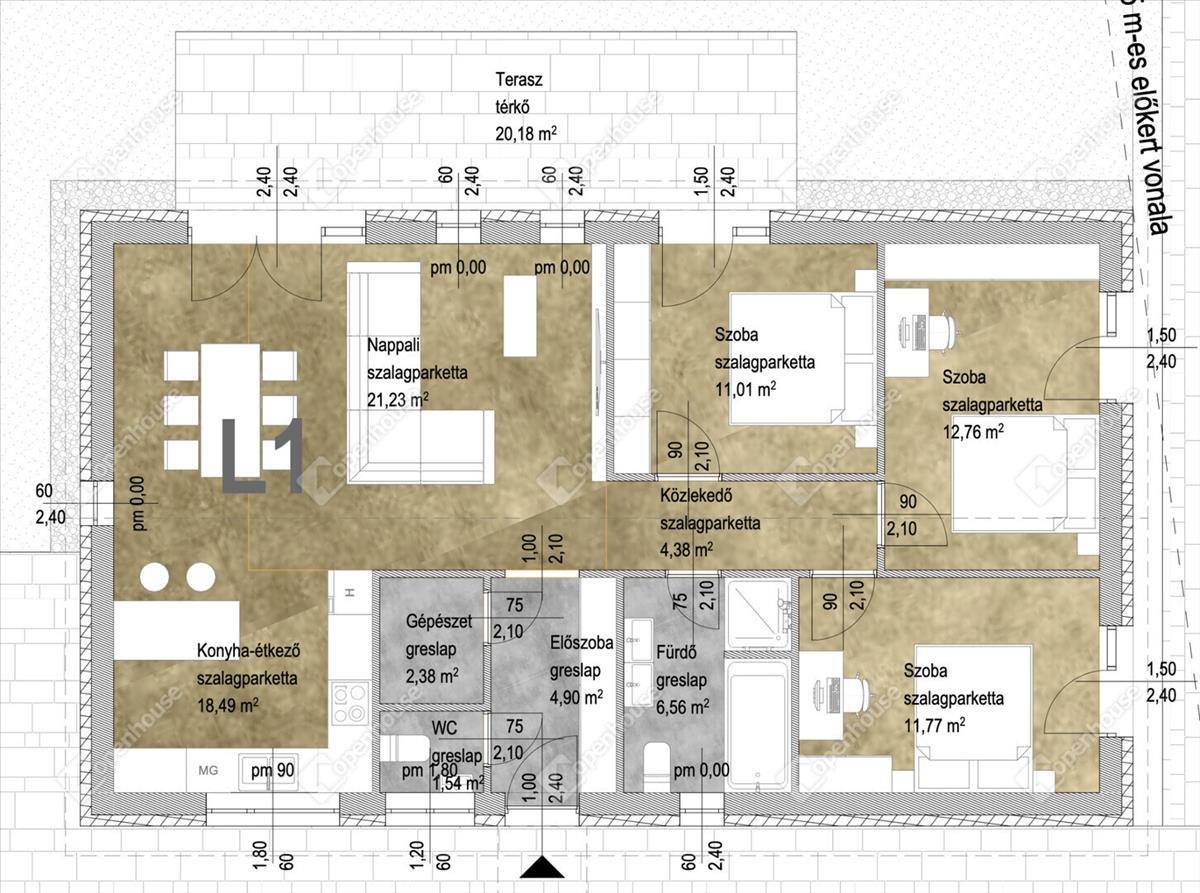 95m2-es családi ház + 20m2 épített terasz kerámia burkolattal
