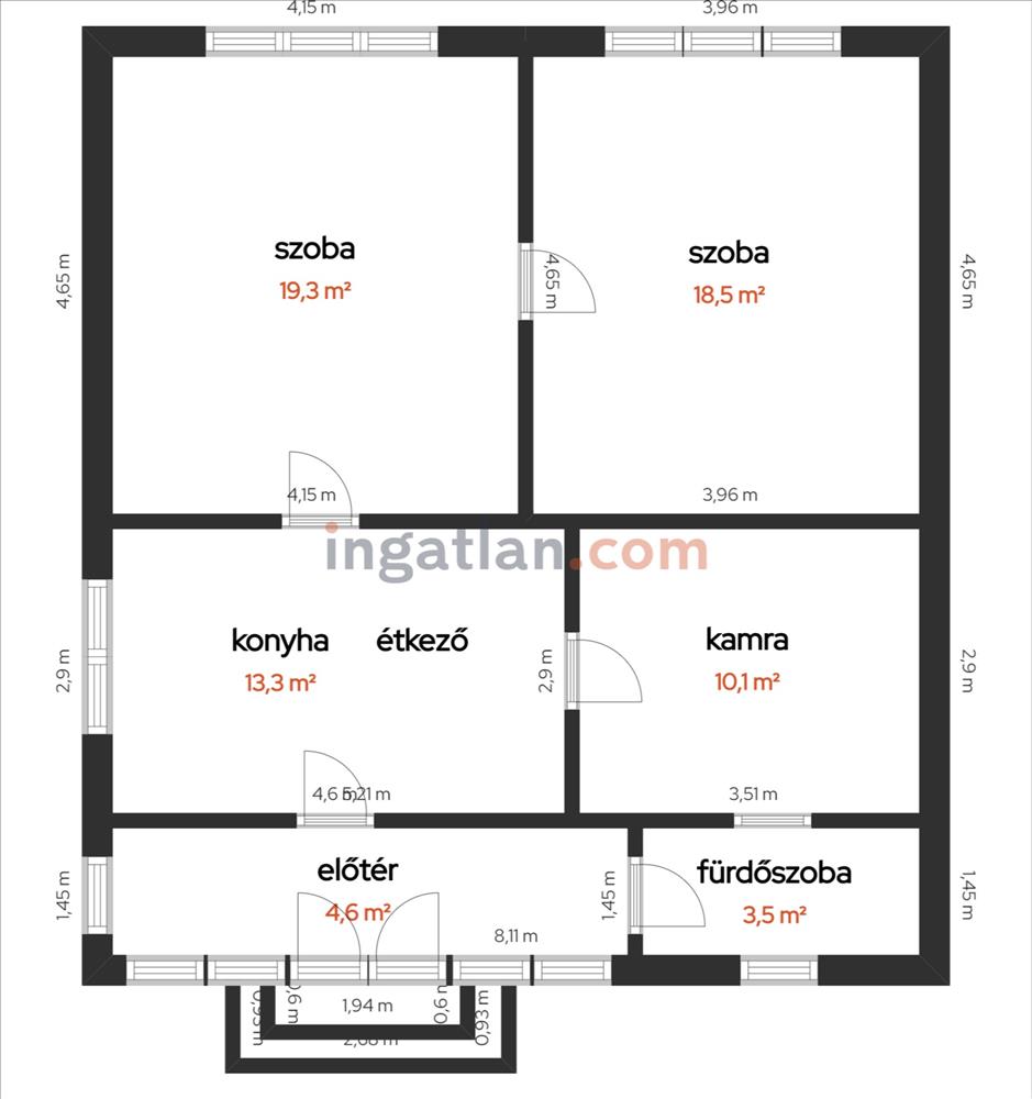 A 69 m²-es ingatlan két szobás, tágas, világos konyha-étkezővel és egy teljesen ablakos, napfényben úszó előtérrel rendelkezik, ami igazán kellemes, barátságos életteret biztosít. Fürdőszoba kádas kialakítással és egy igazán tágas kamra melyből a padlásra lehet feljutni.