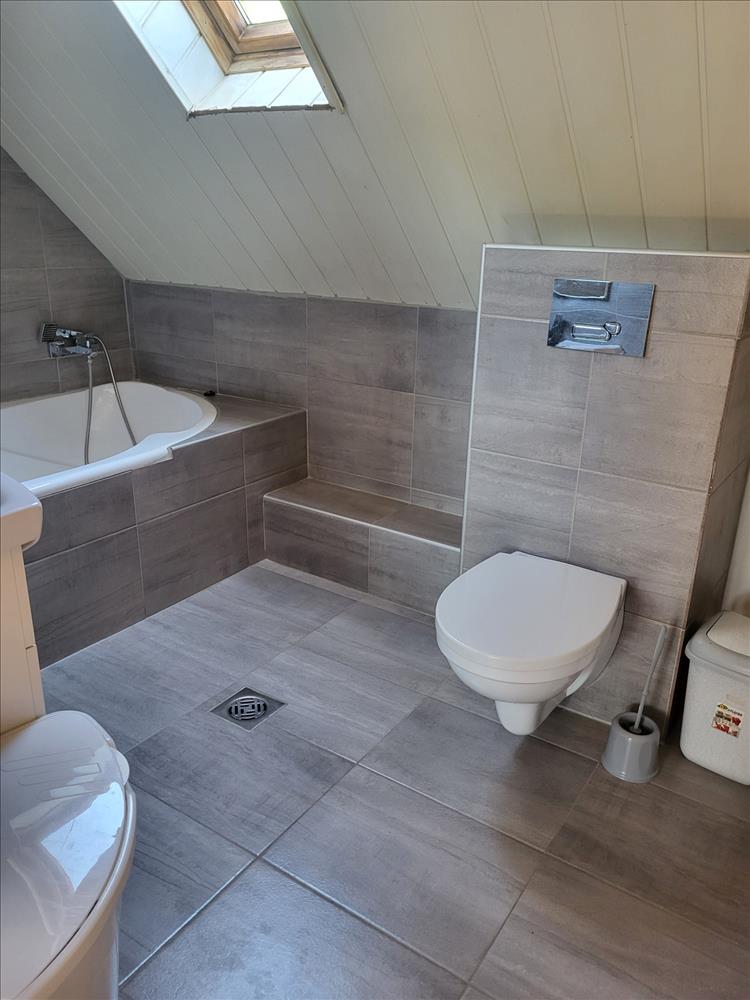 Az emeleten 2 nagy szoba, az egyikből 2 kisebb szoba is kialakítható, a másikhoz gardrób rész is tartozik.