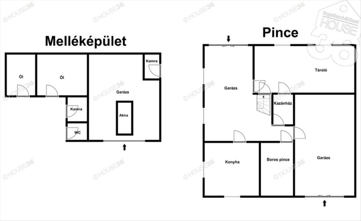 Egész épület alatt szuterén, garázzsal, konyhával, tárolókkal