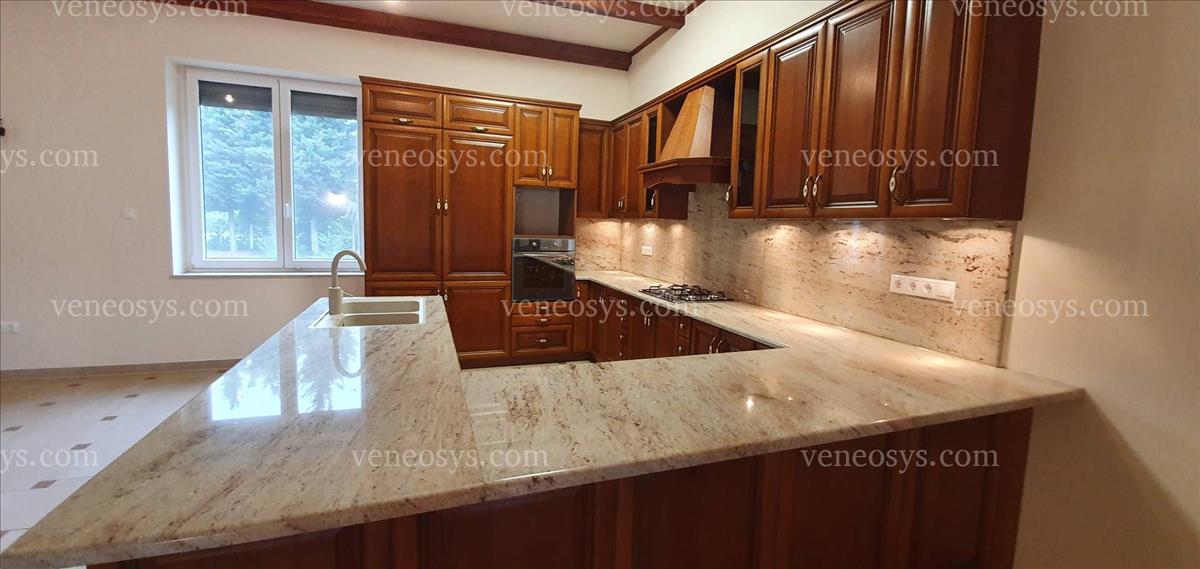 A közel 60 m2-es teraszkapcsolatos amerikai konyhás nappali lehetőséget ad a családnak közös időtöltésekre, legyen szó nagy beszélgetésekről, főzésekről, ünnepekről. Az új, egyedileg gyártott konyhabútor prémium minőségben készült, gránit munkalappal, és beépített konyhagépekkel felszerelt. a hozzá kapcsolódó 17 m2-es fedett teraszról pedig zavartalanul élvezhetjük a kristálytiszta levegőt, madárcsicsergést. Az elosztását illetően is remek választás. a szülői hálóból nyílik egy szoba - amelyből akár egy gardrób is kialakítható- és egy kényelmes, tusolóval, sarokkáddal, márványpultos dupla mosdóval, bidével, wc-vel felszerelt fürdő. a további 3 szoba a közlekedőből elérhető mint ahogy a másik, zuhanyzóval ellátott fürdőszoba is.