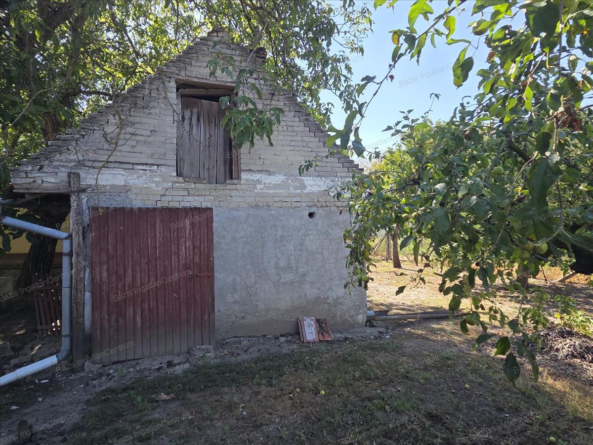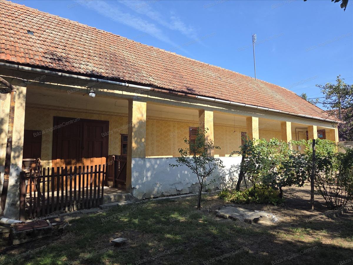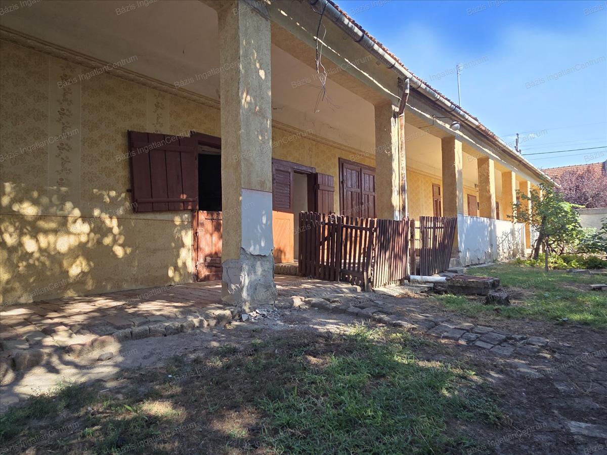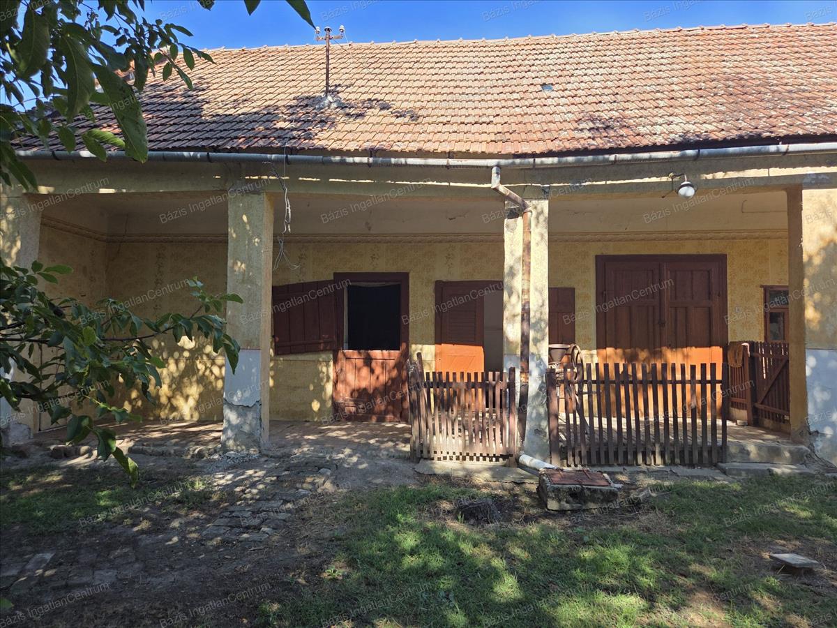 Bács-Kiskun megye Jánoshalma városának központjában, buszmegállótól 5 percre, csendes, nyugodt utcában eladó egy 59 m²-es családi ház, mely egy három osztatú, tágas, 909 m²-es telken helyezkedik el. a falazat vályogból épült, a födém saralt, tetőszerkezete cserép fedésű. a házban 2 szoba és egy nappali lett kialakítva, ezen kívül egy gang is kapcsolódik hozzá, ahonnan kamra, pince és tároló nyílik. a ház fa nyílászáróin redőny található. Villany, gáz az ingatlanba bevezetve. a fűtést gázkonvektor és - vagy cserépkályha biztosítja. Csatornaközmű és víz a telken belül található. Az első kertben csemege szőllő és virágok lettek ültetve. a második udvarban 2 nagy diófa ad árnyékot és termést. Itt két vízgyűjtő lehetőség: egy ásott kút, illetve egy ciszterna is adott. Az udvart nyári konyha választja el a konyhakerttől, ahol található még 2 termő almafa is.