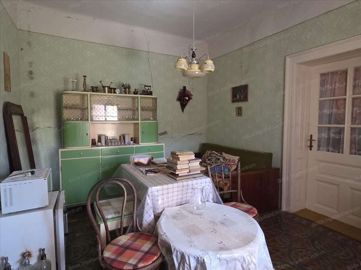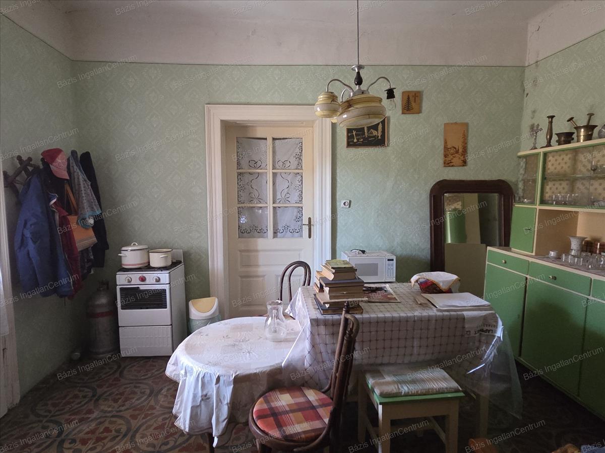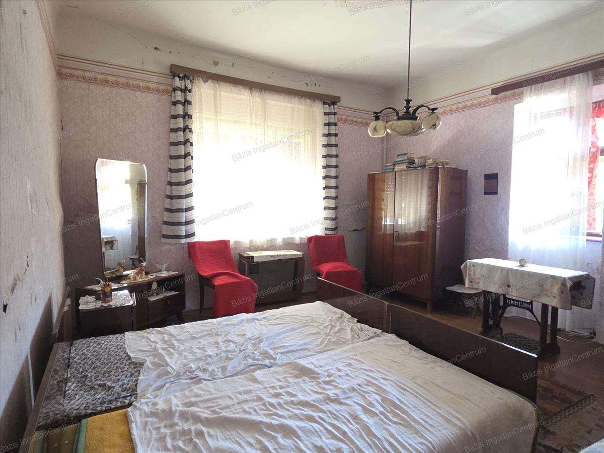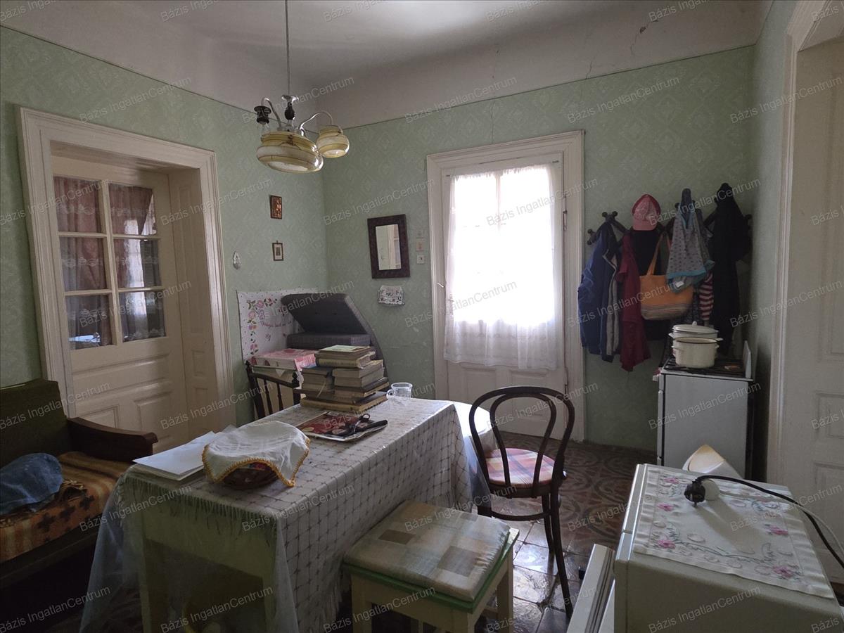 Bács-Kiskun megye Jánoshalma városának központjában, buszmegállótól 5 percre, csendes, nyugodt utcában eladó egy 59 m²-es családi ház, mely egy három osztatú, tágas, 909 m²-es telken helyezkedik el. a falazat vályogból épült, a födém saralt, tetőszerkezete cserép fedésű. a házban 2 szoba és egy nappali lett kialakítva, ezen kívül egy gang is kapcsolódik hozzá, ahonnan kamra, pince és tároló nyílik. a ház fa nyílászáróin redőny található. Villany, gáz az ingatlanba bevezetve. a fűtést gázkonvektor és - vagy cserépkályha biztosítja. Csatornaközmű és víz a telken belül található. Az első kertben csemege szőllő és virágok lettek ültetve. a második udvarban 2 nagy diófa ad árnyékot és termést. Itt két vízgyűjtő lehetőség: egy ásott kút, illetve egy ciszterna is adott. Az udvart nyári konyha választja el a konyhakerttől, ahol található még 2 termő almafa is.