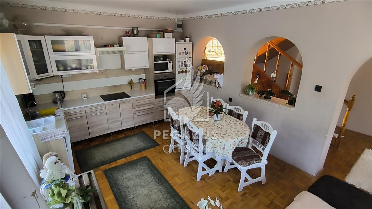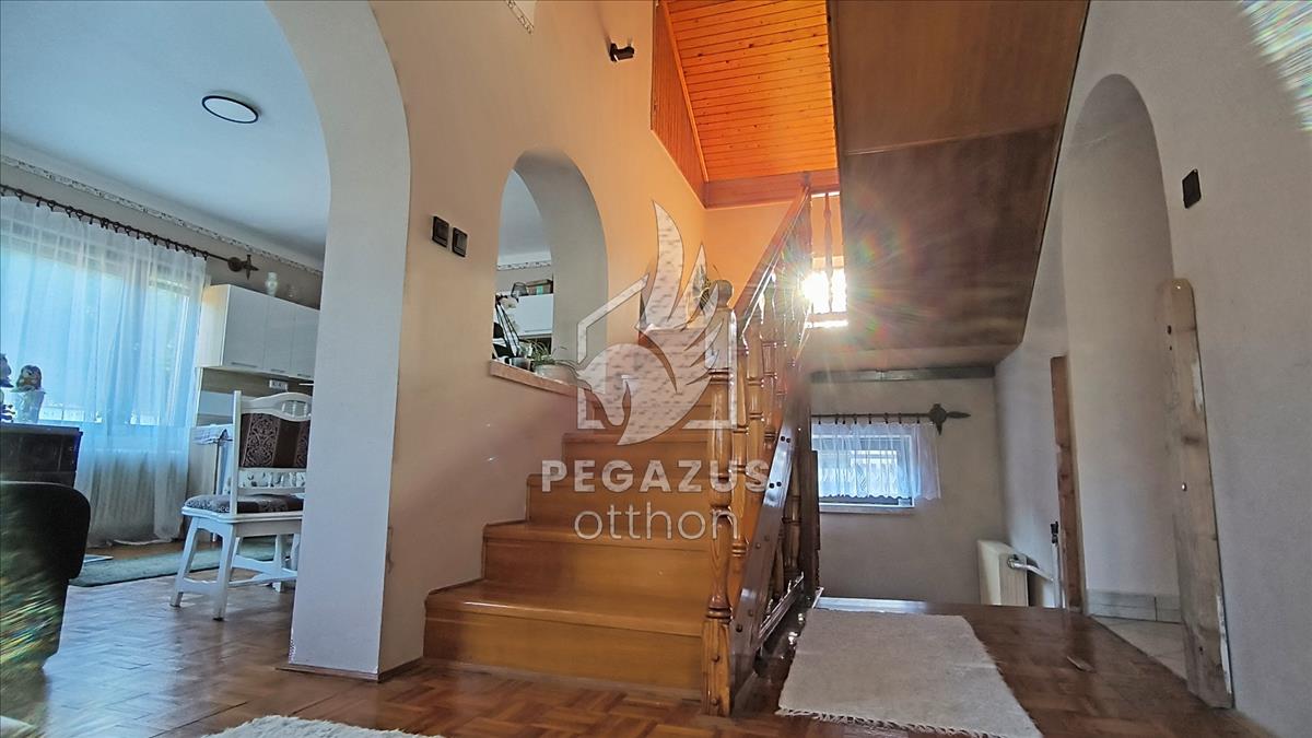 A ház a falu egyik csendes utcájában, egy 1910 m²-es, gondozott telken terül el, gyönyörű panorámás kilátással. a tágas, 3 szintes, 210 m²-es otthon ideális választás nagycsaládosoknak, de akár több generáció együttélésére is kiválóan alkalmas.