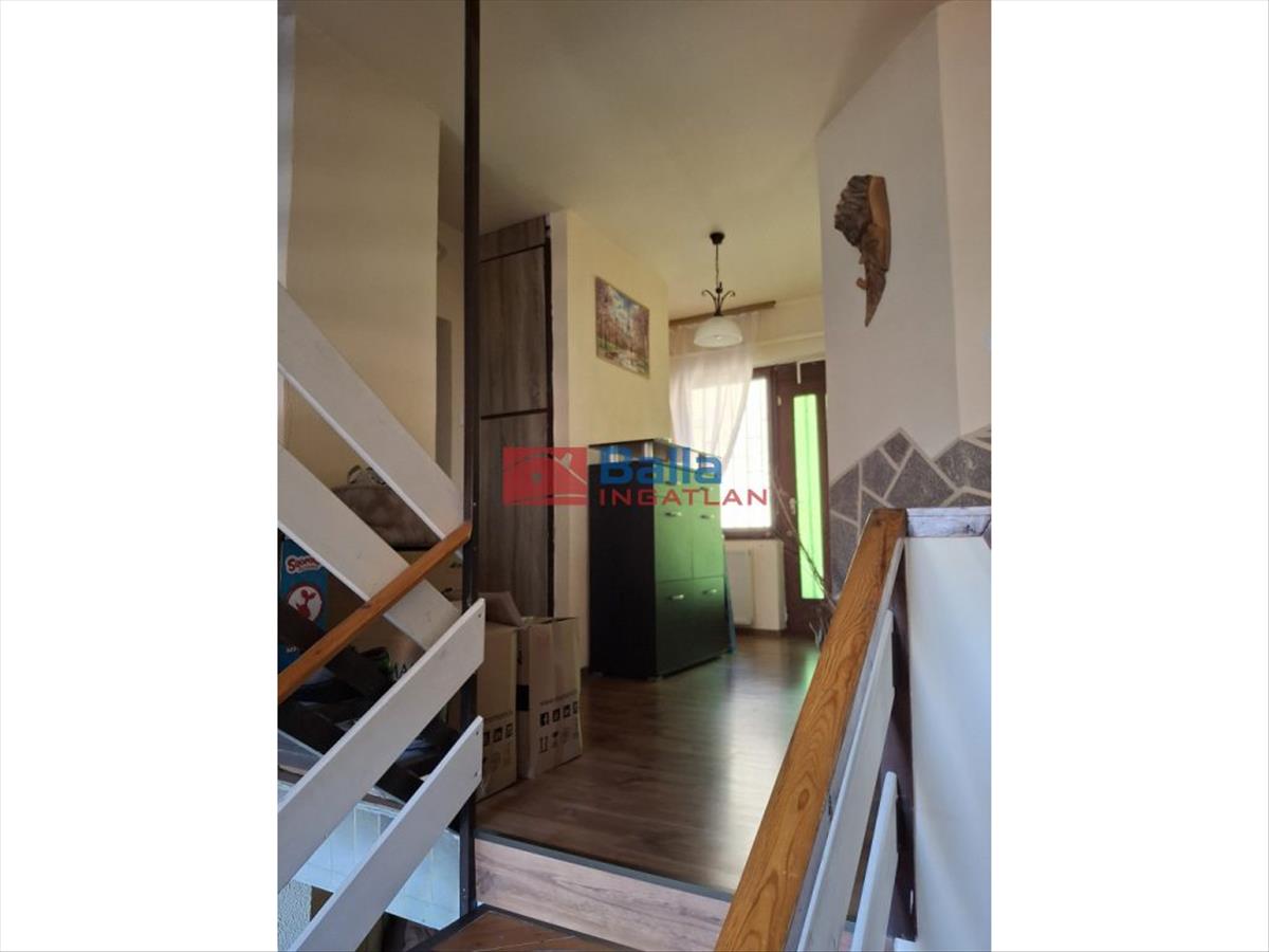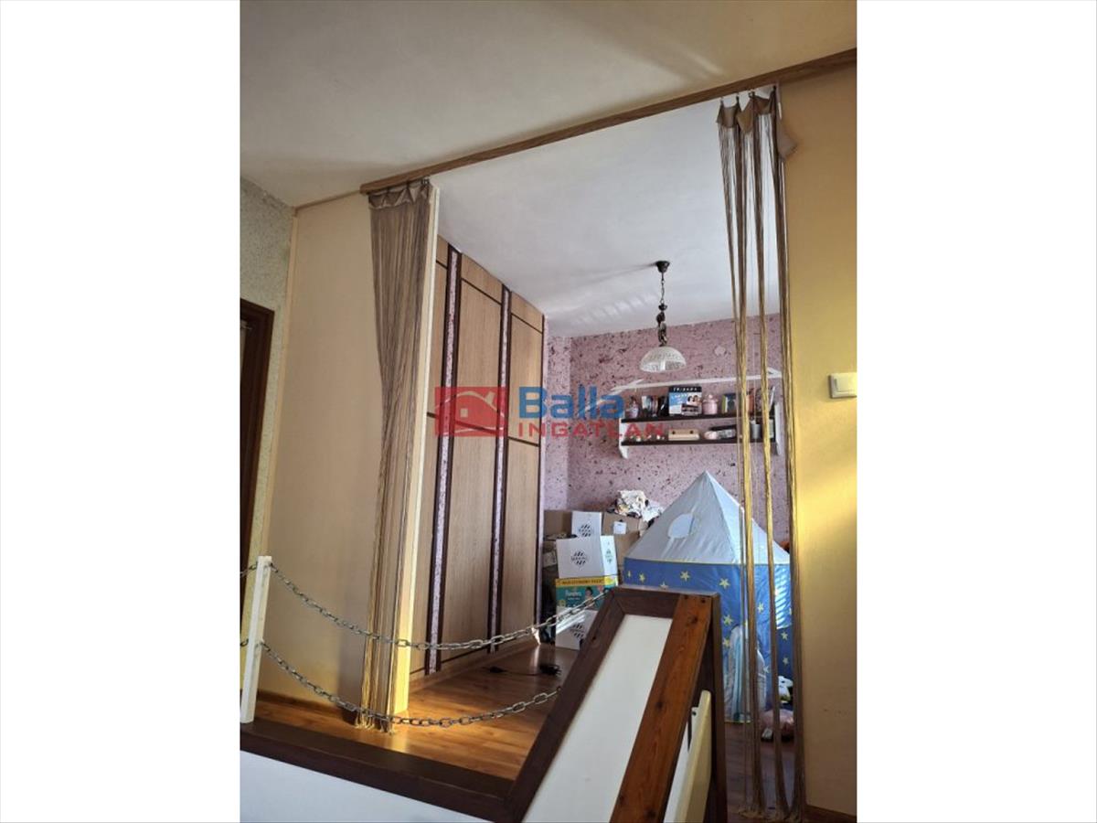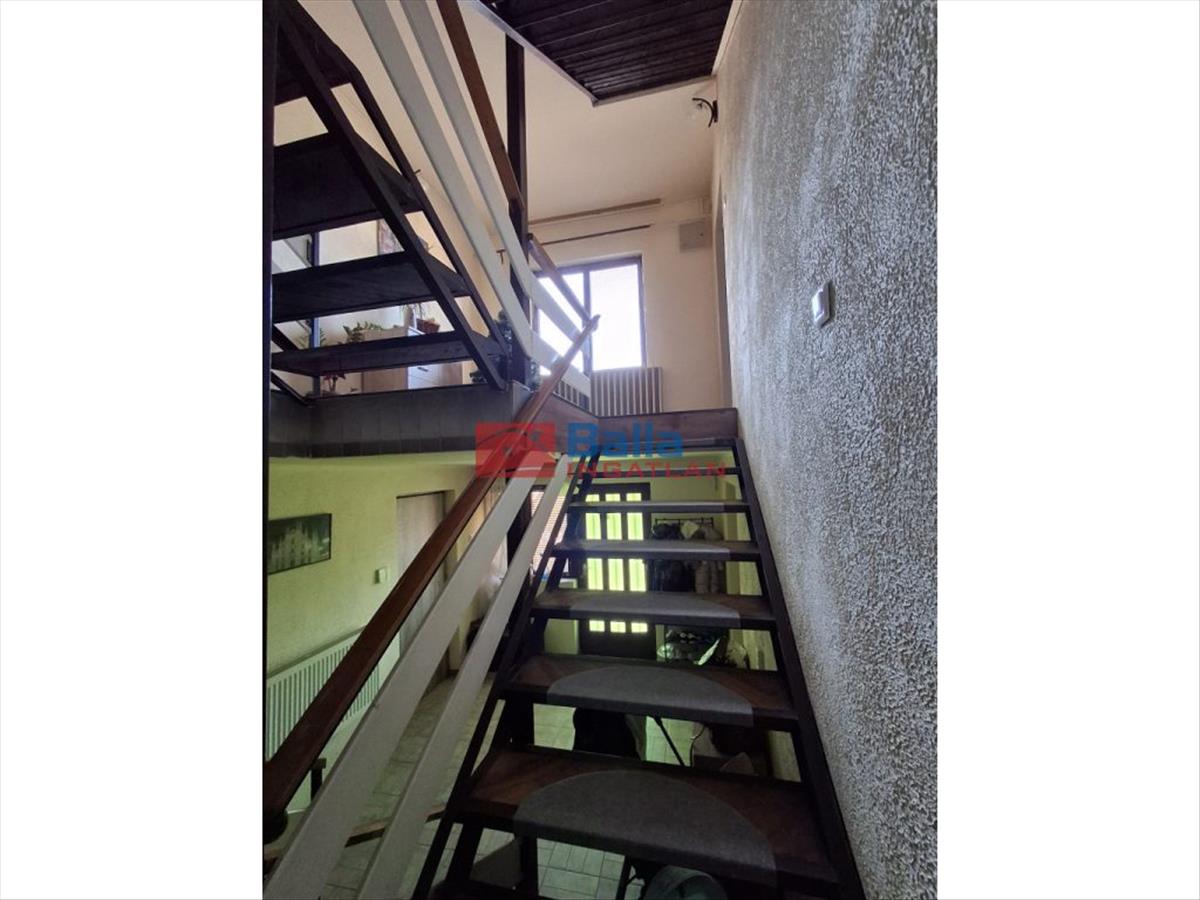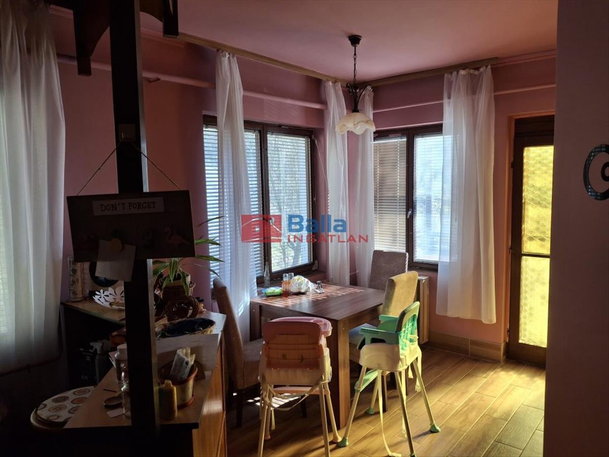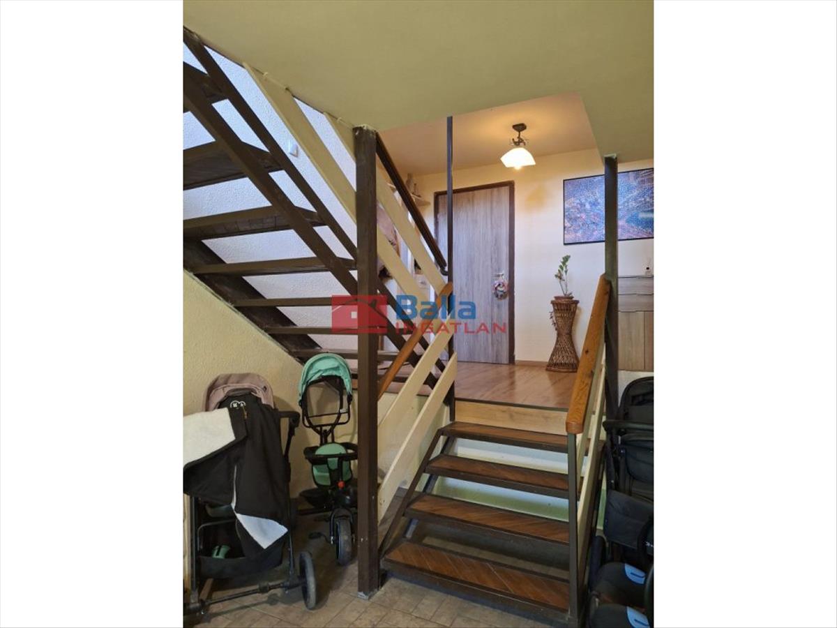Eltolt szintes, négy szoba található a földszinten és két szoba az emeleten, egy fürdőszoba, két különálló Wc és tárolóhelyiség, nagy étkezős konyhával, erkéllyel és egy terasszal.