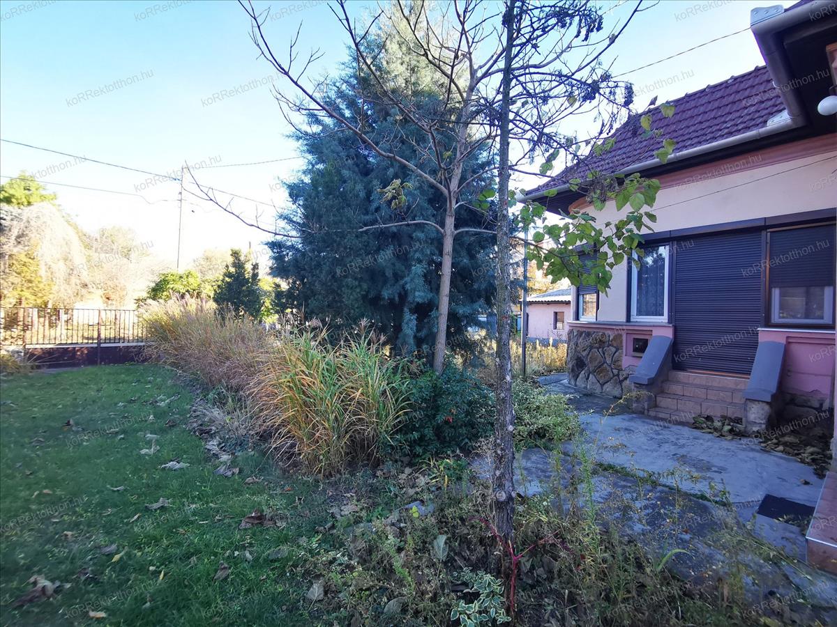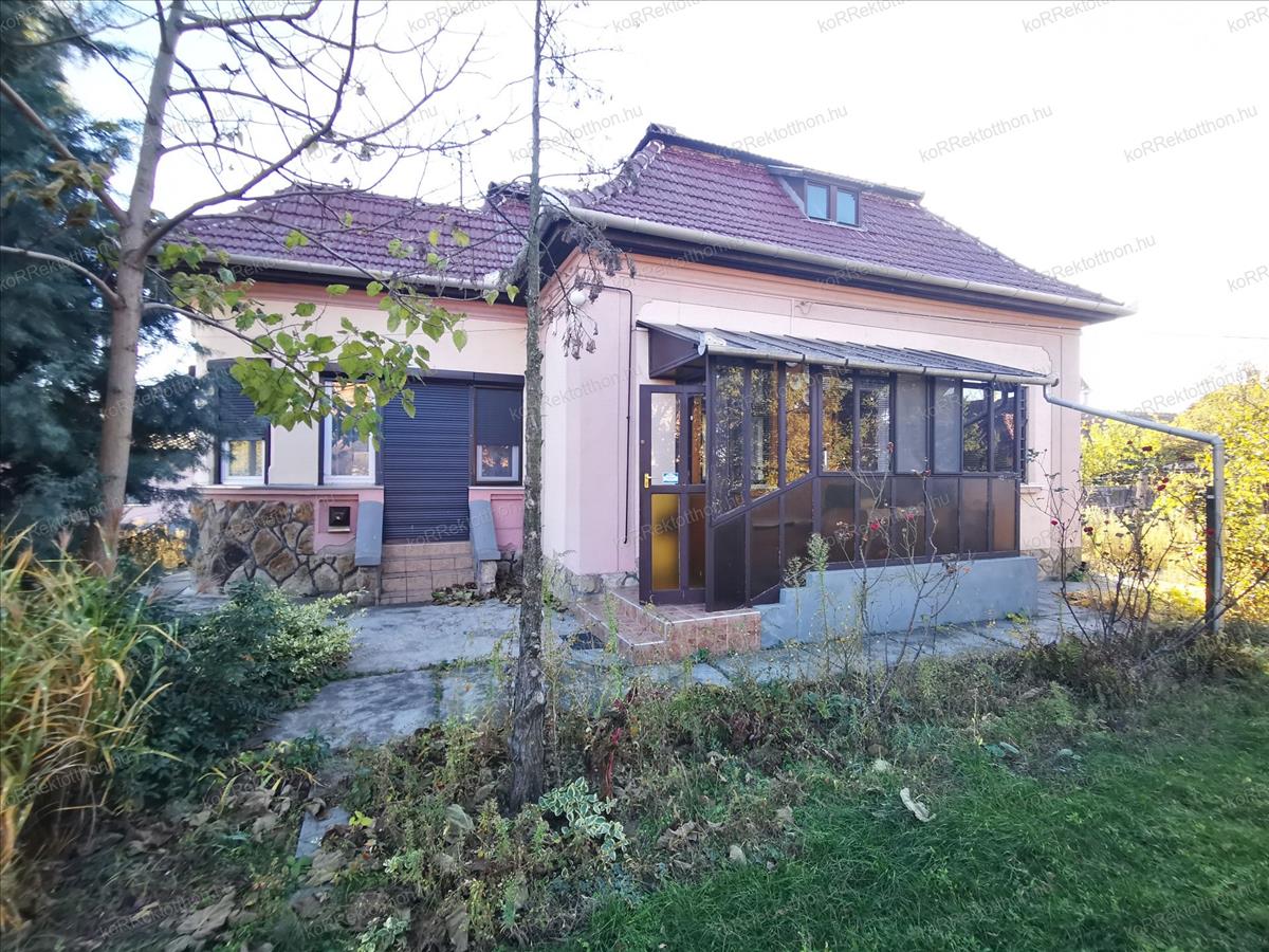 A házhoz tartozik egy nagy, rendezett kert, amely ideális pihenésre, kertészkedésre vagy akár további fejlesztésre is. a telken garázs biztosít kényelmes parkolási lehetőséget.
