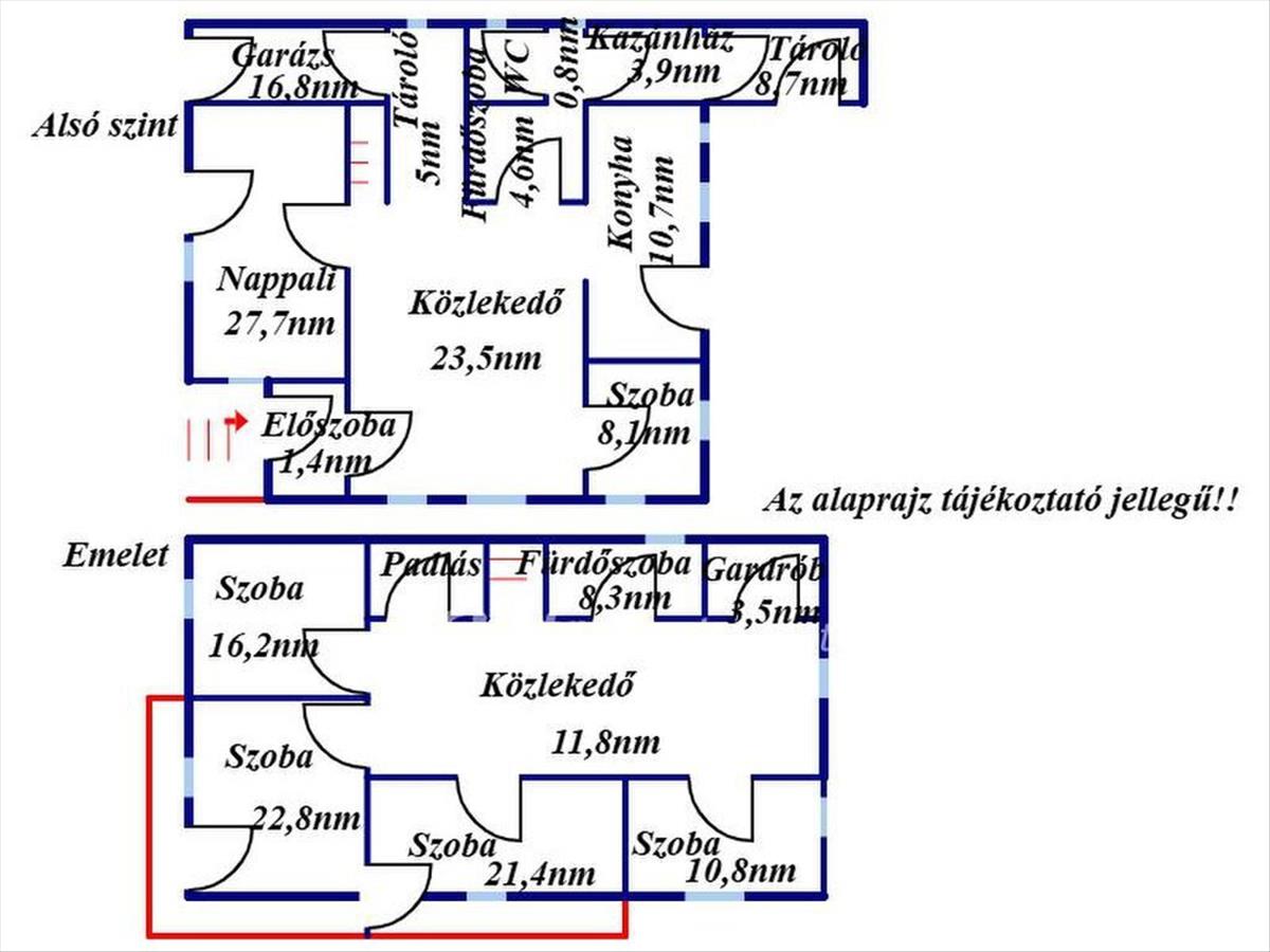 Eladásra kínálok Jász-Nagykun-Szolnok vármegyében Jászberényben egy 206 nm -es hasznos alapterületű, tégla falazatú családi házat 1044 nm -es telken! a ház elrendezése praktikus és kényelmes, a nagy, napfényes terek kellemes otthoni környezetet biztosítanak a mindennapokra! Az ingatlanban három világos, napfényes szoba, valamint két fél szoba került kialakításra, így nagyobb család számára is ideális lehet! Ezen kívül rendelkezésre áll egy tágas nappali, konyha, két fürdőszoba, külön wc, előszoba, két közlekedő, gardrób, több tárolóhelyiség, kazánház, valamint egy garázs is! Az ingatlan egyik nagy előnye, hogy a lakótereken túl számos olyan adottsággal rendelkezik, amely a kényelmet és a sokoldalú használhatóságot tovább növeli. a házhoz tartozik egy 8 nm -es erkély, valamint három különálló garázs, ami több autó tárolására, műhely kialakítására vagy akár vállalkozási célú használatra is kiváló lehetőséget biztosít! Az otthon melegéről gázfűtés gondoskodik padlófűtéssel, amely komfortos és egyenletes hőérzetet nyújt! Az épület szerkezete és kialakítása hosszú távon is jó lehetőségeket rejt, hiszen a padlástér tovább bővíthető, így újabb szobák vagy egyéb helyiségek is kialakíthatók benne az igényeknek megfelelően! Ez az ingatlan ideális lehet nagyobb családok számára, akik tágas és jól élhető otthont keresnek, ugyanakkor vállalkozás céljára is kiváló választás lehet a mérete, a helyiségek száma, a garázsok és a telek adottságai miatt. Az ingatlan a városközponttól 10 perc sétára található! Amennyiben az ingatlan megvásárlásához hitelre van szüksége az OTP Bank kedvező hitelkonstrukcióit tudom ajánlani! Babaváró hitel megfelelő személyi feltételek mellett felvehető! Hívjon bizalommal!