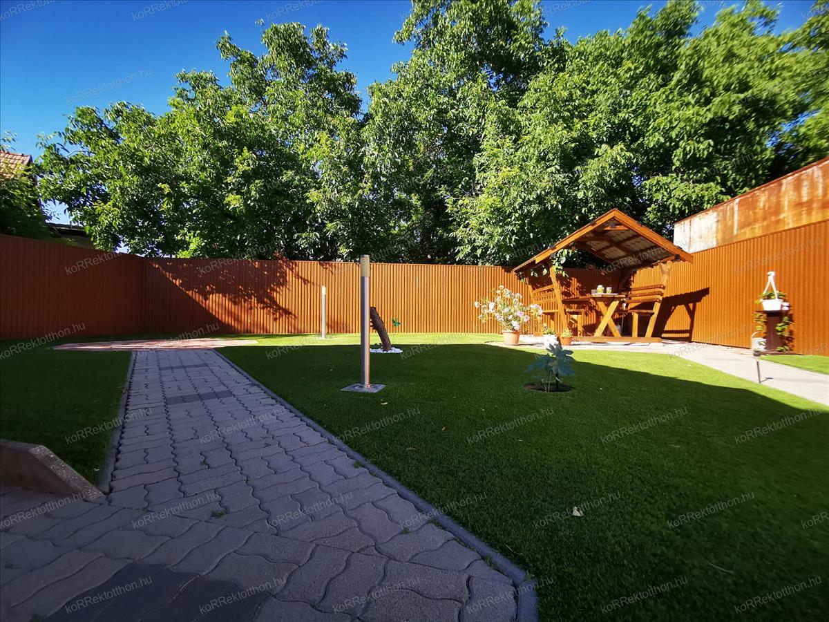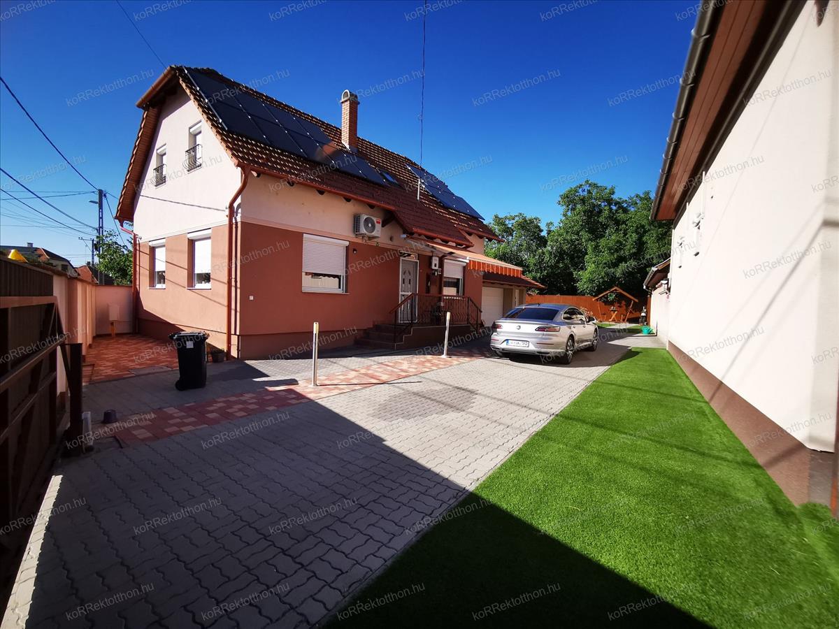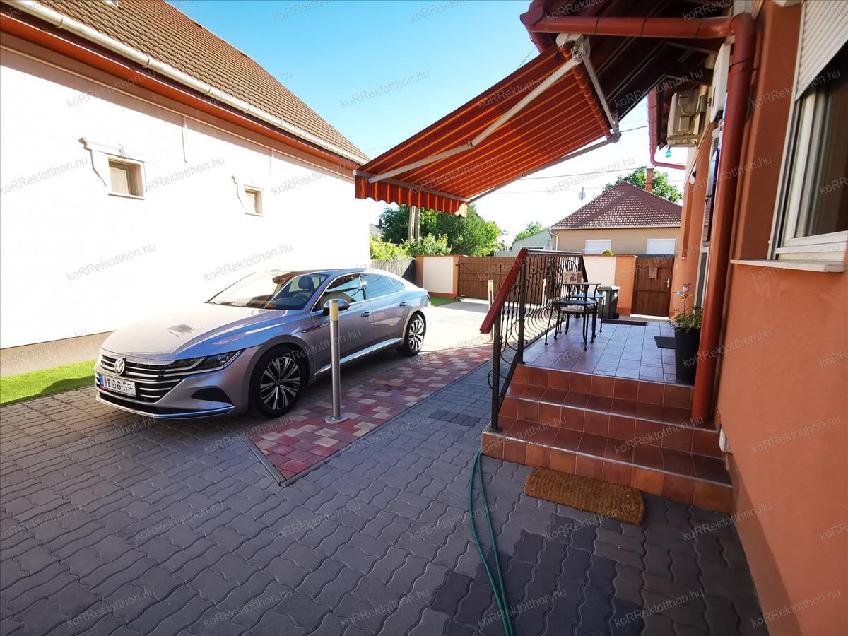 A 100 m² hasznos alapterületű otthon mellett egy 40 m²-es, dupla beállásos garázs is helyet kapott, mely WC-vel és mosdóval felszerelt. a 450 m²-es telken gondosan kialakított holland pázsit, igényes térburkolat, valamint dísznövények, kerti kiülő teszik hangulatossá a külső udvart, amely a nyugalom valódi szigete. a parkolás az utcafronton és az udvarban is több jármű számára biztosított.