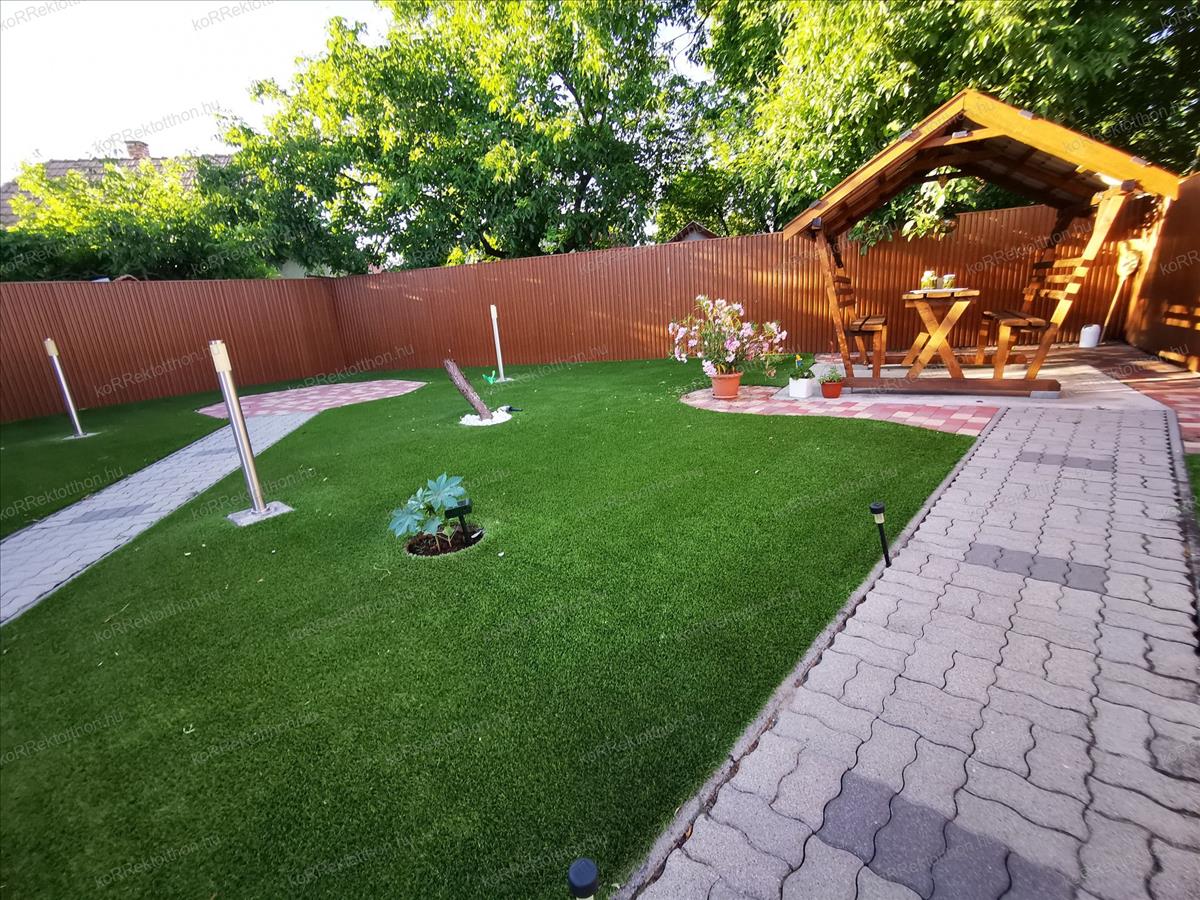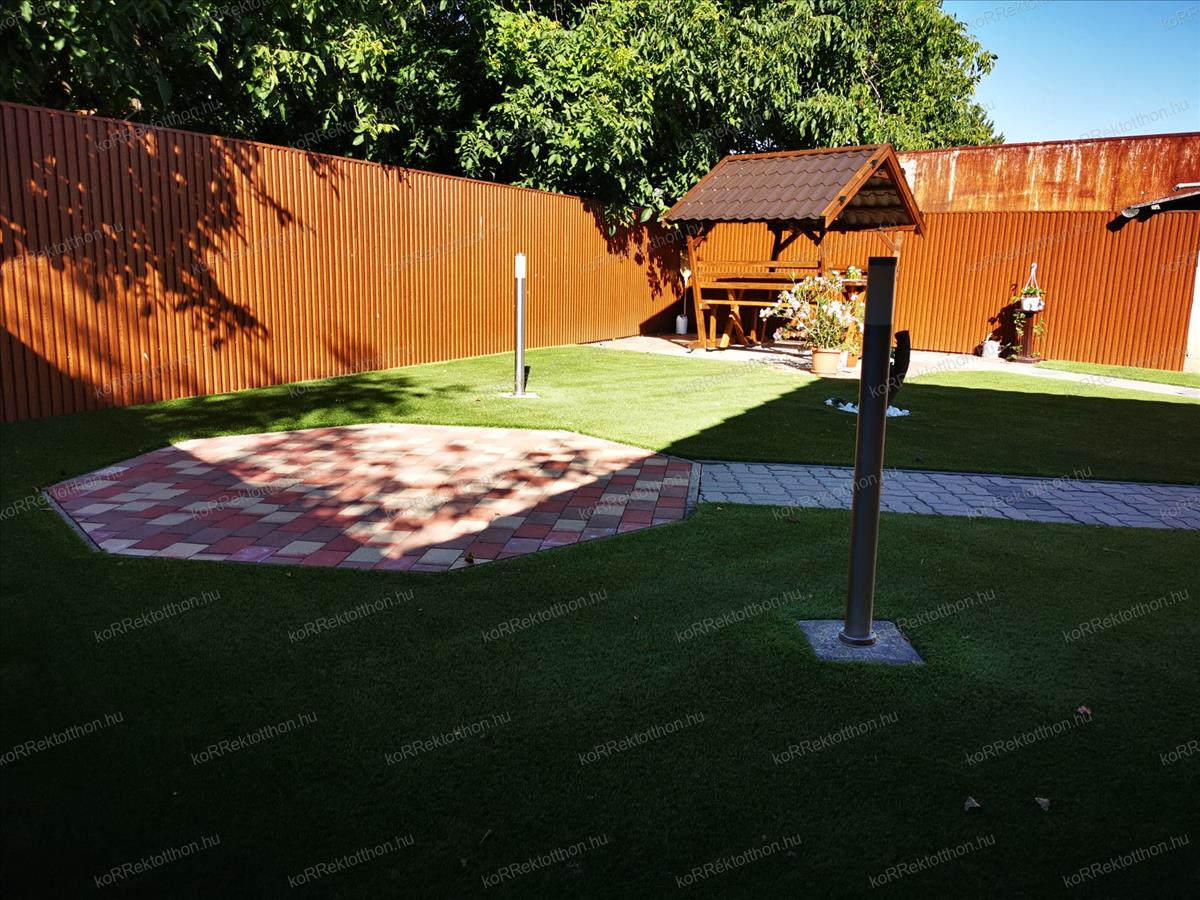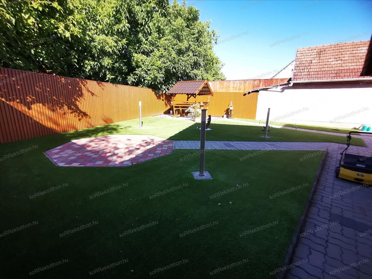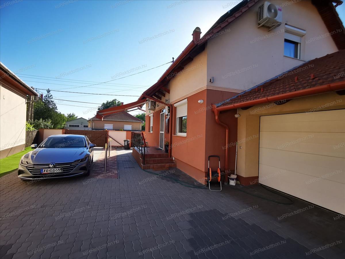 A 100 m² hasznos alapterületű otthon mellett egy 40 m²-es, dupla beállásos garázs is helyet kapott, mely WC-vel és mosdóval felszerelt. a 450 m²-es telken gondosan kialakított holland pázsit, igényes térburkolat, valamint dísznövények, kerti kiülő teszik hangulatossá a külső udvart, amely a nyugalom valódi szigete. a parkolás az utcafronton és az udvarban is több jármű számára biztosított.