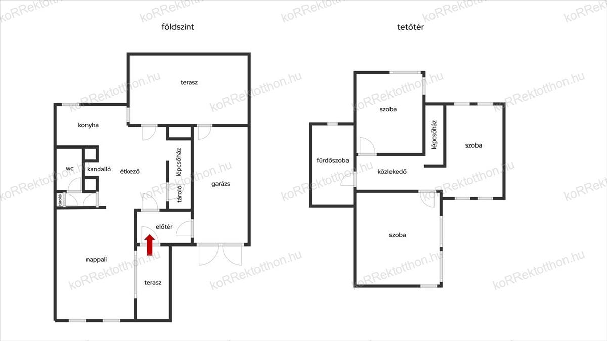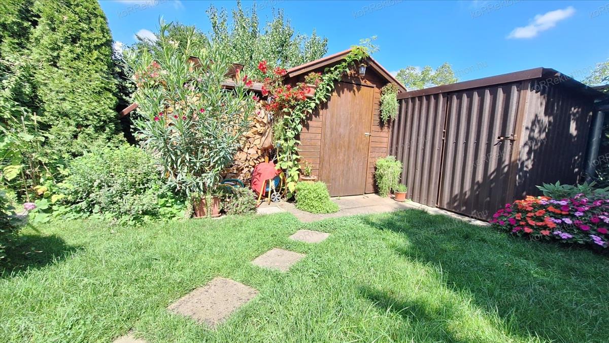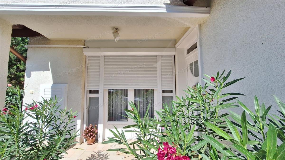 A ház tartozéka egy utcafrontról megközelíthető garázs, amely belülről közvetlen átjárást biztosít az előszobába és a kertbe is.
