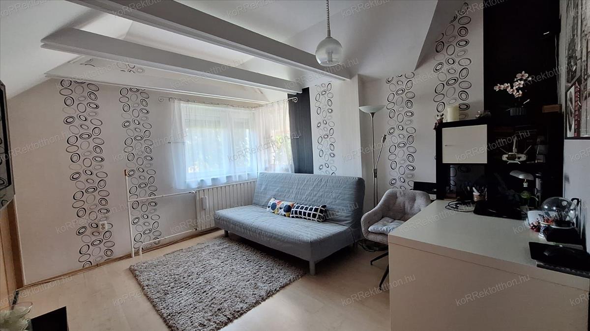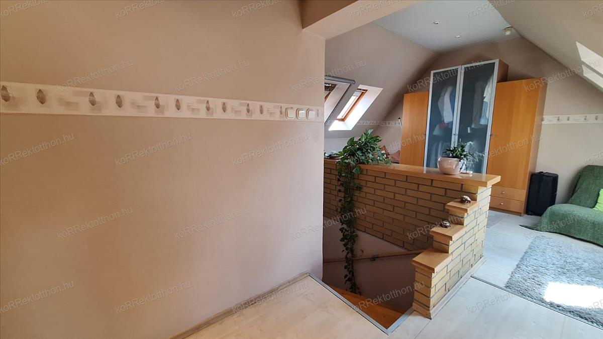 Az emeleten két kényelmes hálószoba, egy nagy fürdőszoba és egy jelenleg társalgóként használt, de akár újabb szobává alakítható helyiség ad további lehetőségeket.