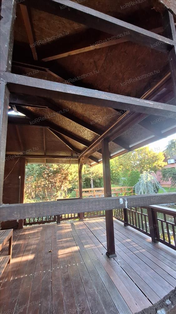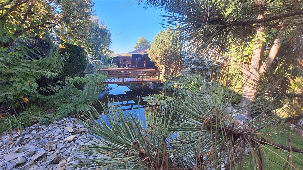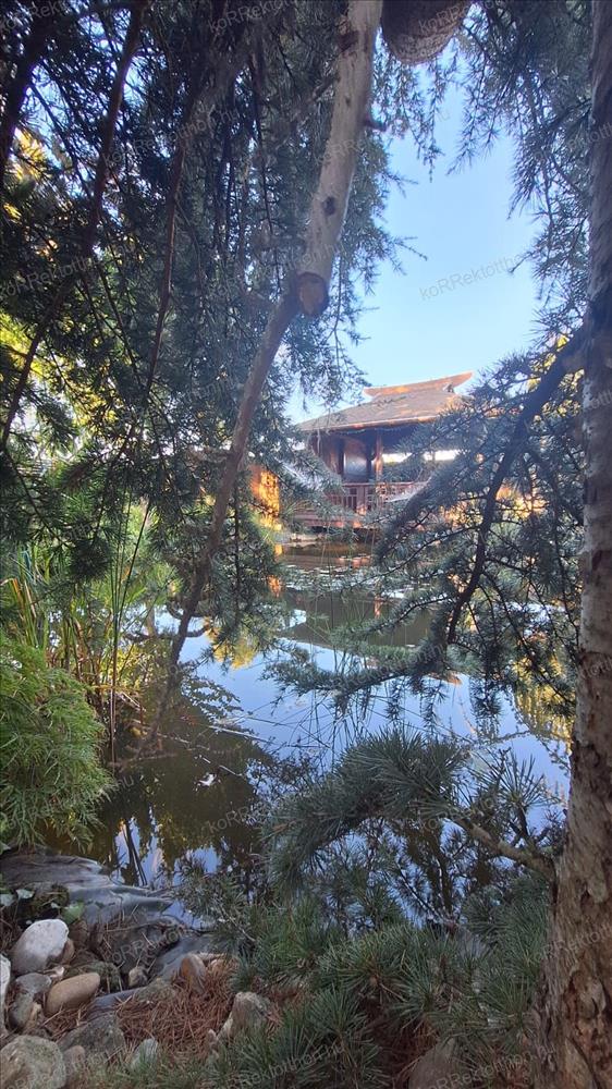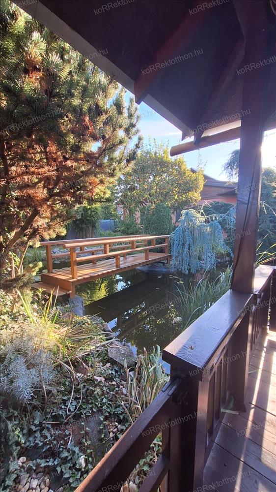 A kert hátsó részében egy hangulatos pagoda kapott helyet, melyből csodálatos kilátás nyílik a dísztóra, ahol különleges halfajták teszik még különlegesebbé a környezetet – a természet szerelmeseinek igazi gyöngyszem!