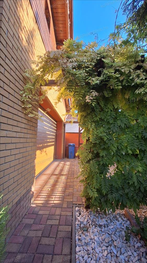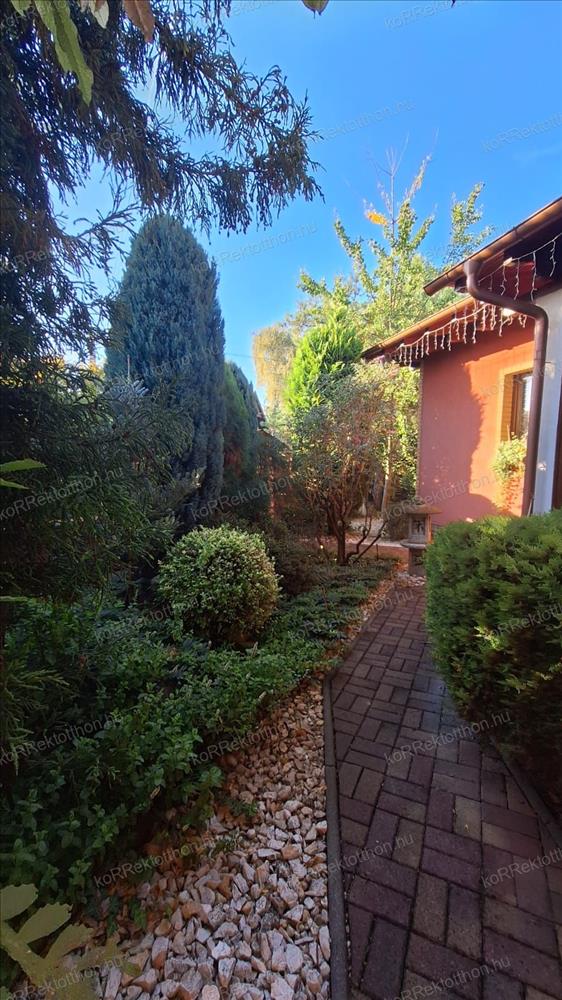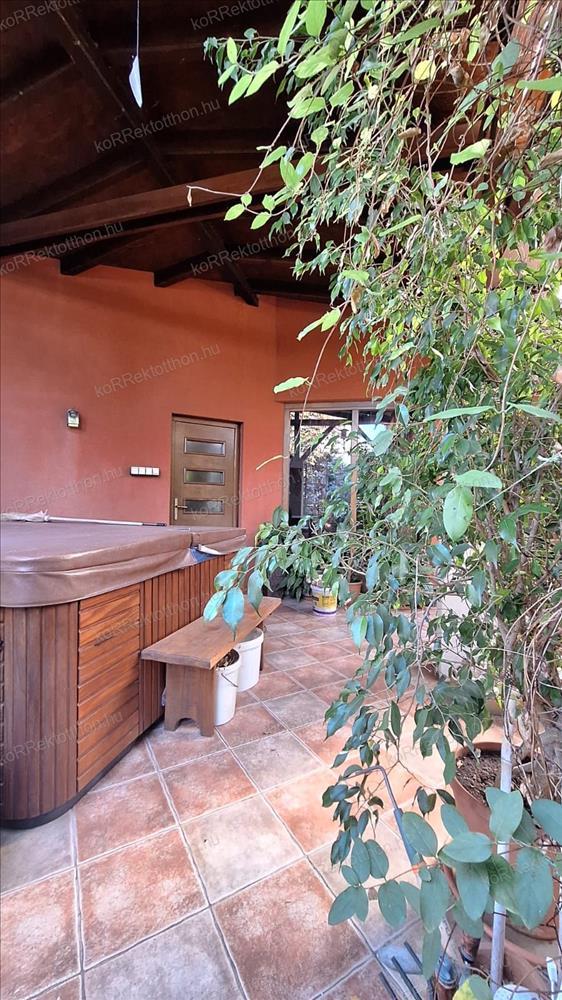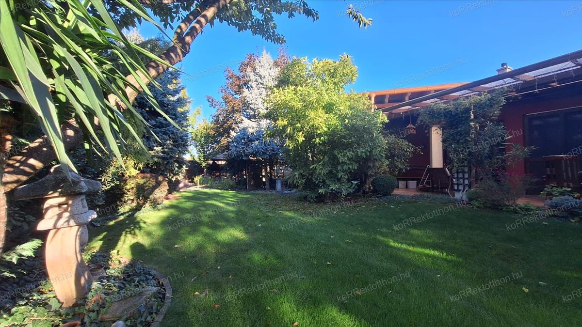 Ez az egyedülálló ingatlan különleges építési móddal, feng shui elvei szerint készült, és egy valódi oáziskertet kínál – ritka örökzöldekkel, parkosított udvarral, világítással és automata öntözőrendszerrel kialakítva, amely egész évben varázslatos hangulatot biztosít.