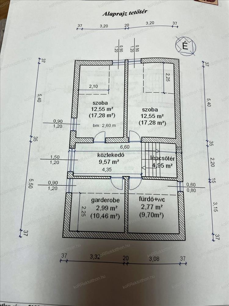 Tetőtér: a beépített tetőtérben két darab 17 m²-es szoba és egy 10 m²-es félszoba található, valamint egy fürdőszoba WC-vel.