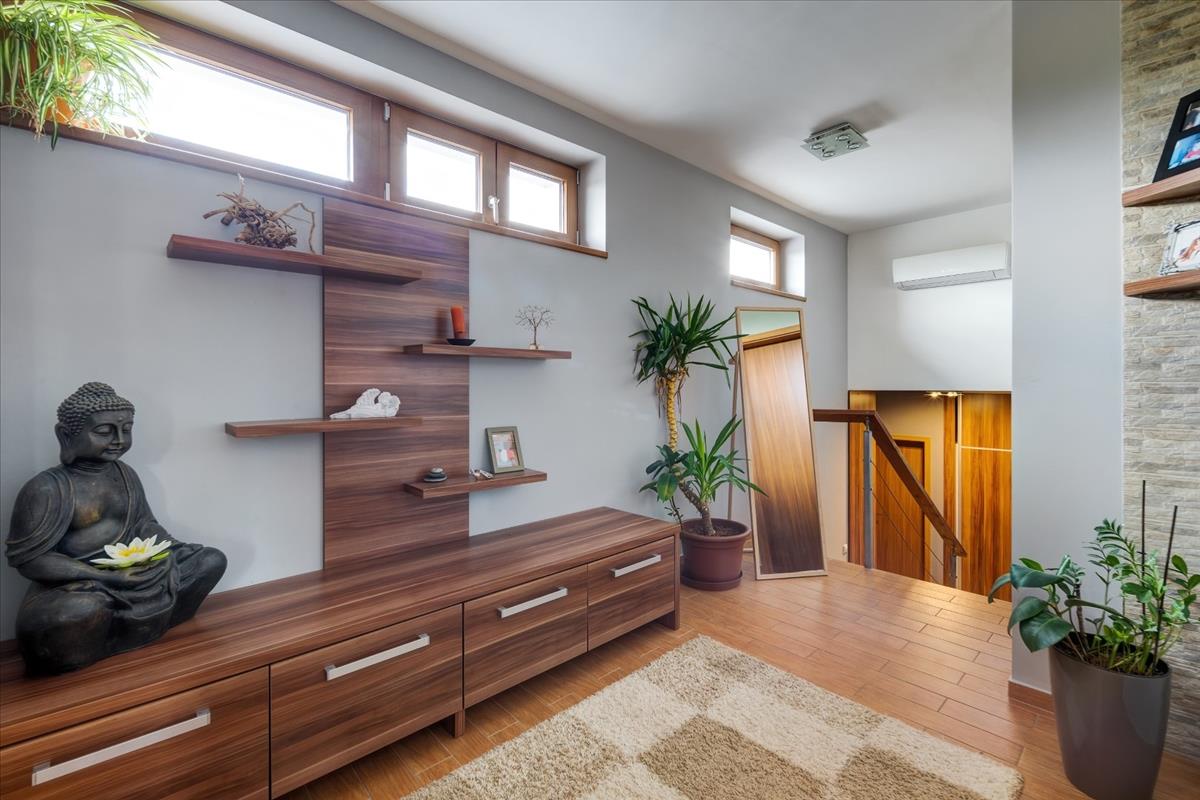 A házban 4 szoba, 2 fürdő, konyha, étkező, mosdók, háztartási helyiség, kamra, szauna található. 8X7 méteres garázs 2 autónak, barkácsműhelynek és további tárolásnak is tágas teret ad. a főépület bruttó 300nm, mely extra hőszigetelésű, minimalista megjelenésű lapostetős, aa+ besorolás, napelemekkel a tetején, hővisszanyerős szellőztetőnrendszerrel, hőszivattyús klímával, kandallóval szerelt önellátó ház, melynek így szinte nincs fenntartási költsége.