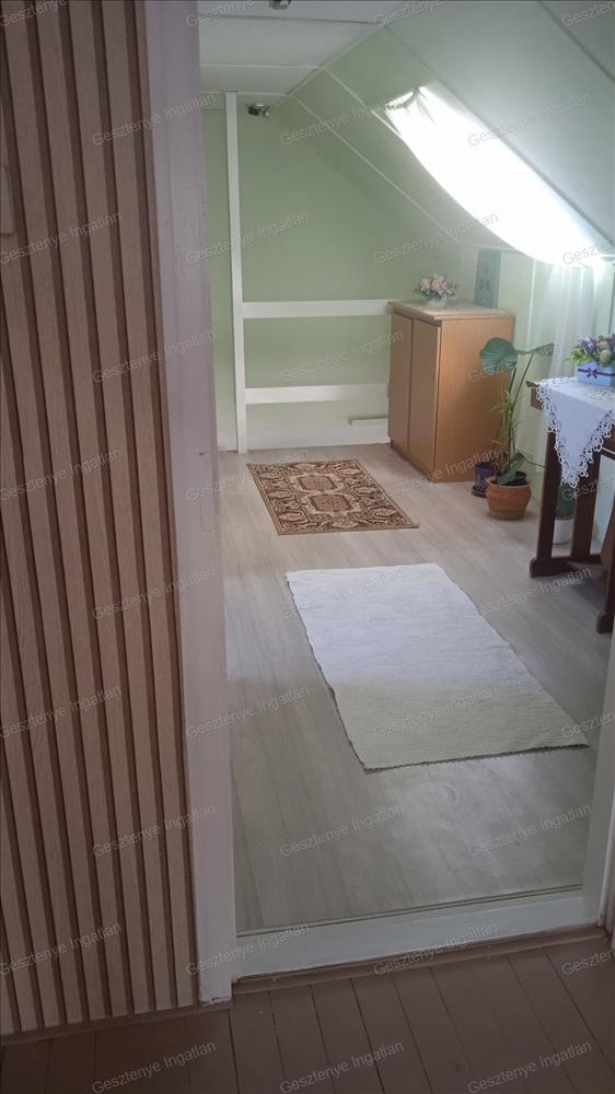 A tetőtérben pedig egy tágas hálószoba, illetve gardrób szoba. a 2008-ban épült, külön bejáratú alsó lakrészben pedig egy nagyméretű szoba, konyha és zuhanyzós fürdőszoba található.