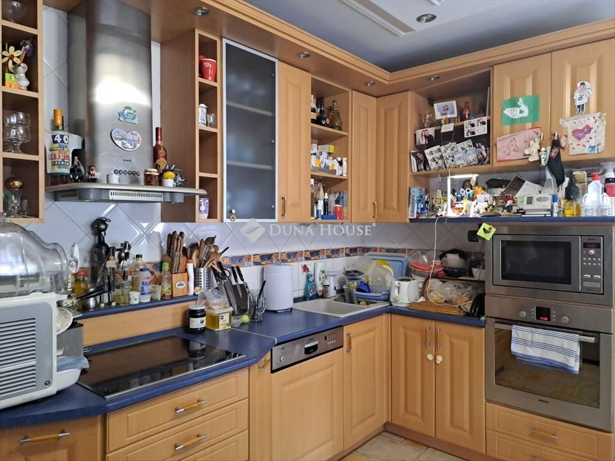 A konyha és az étkező egy légtérben helyezkedik el, modern gépesített amerikai konyhával. a Bosch konyhai gépek, valamint a beépített bútorok a kínálati ár részét képezik. Az ingatlanban 2 fürdőszoba az emeleti fürdőben hidromasszázs kád került beépítésre. Fűtése padlófűtés valamint hűtő-fűtő fűtés, így az egész ingatlanban állandó hőmérséklet van. a redőnyök elektromosak, így egy gombnyomásra mozgathatóak. Az ingatlan kamerával és riasztóval ellátott, az elektromos hálózata pedig 3*20 a.